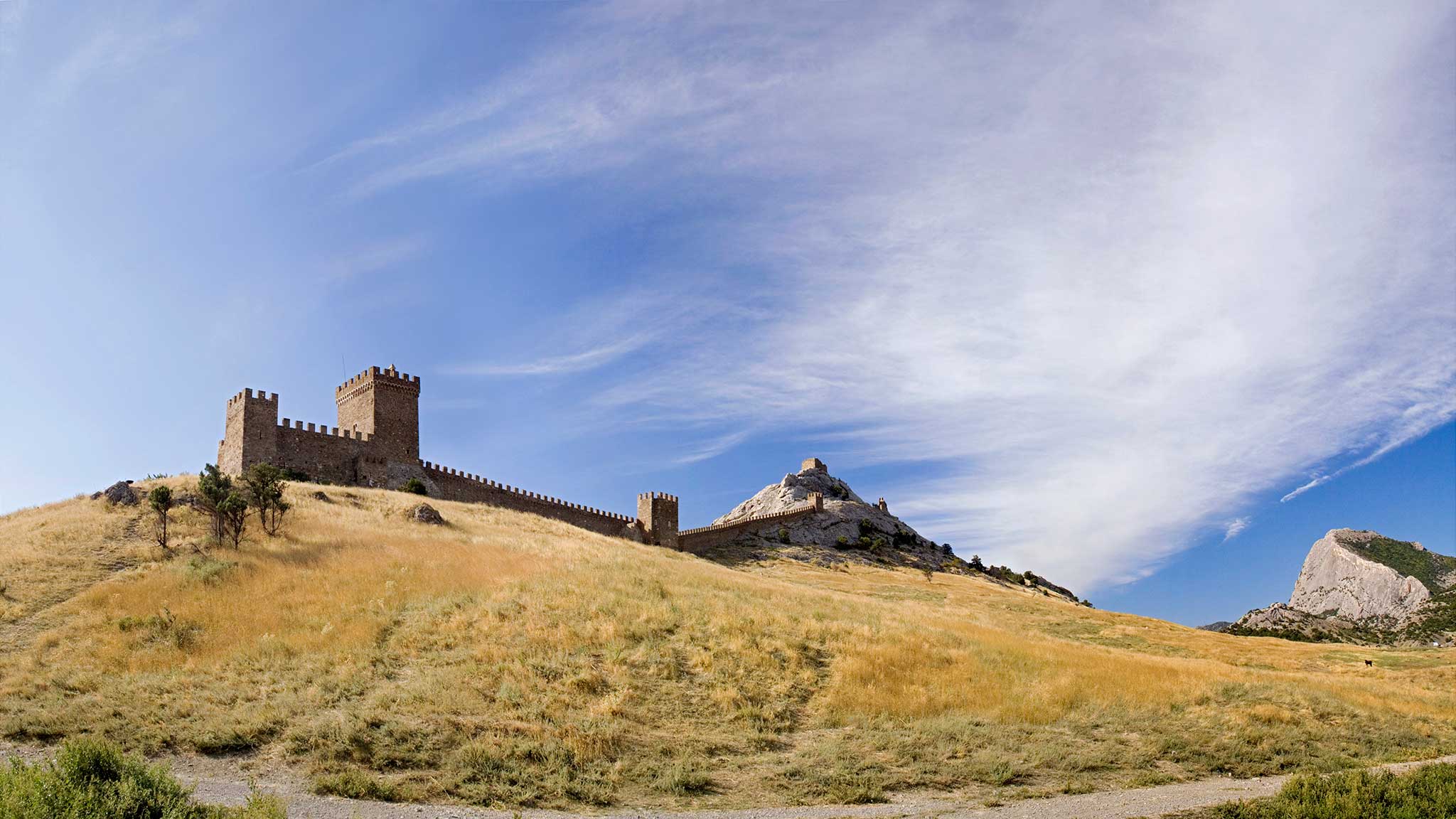 Если ваше детство пришлось на советское время, вы наверняка смотрели фильмы «Всадник без головы», «Мустанг-иноходец», «Сердца трех». Пейзажи для них, столь похожие на североамериканские прерии, нашлись в Крыму, недалеко от города Белогорска, возле уникального памятника природы, известного как Ак-кая или Белая скала.