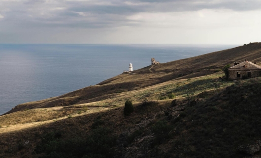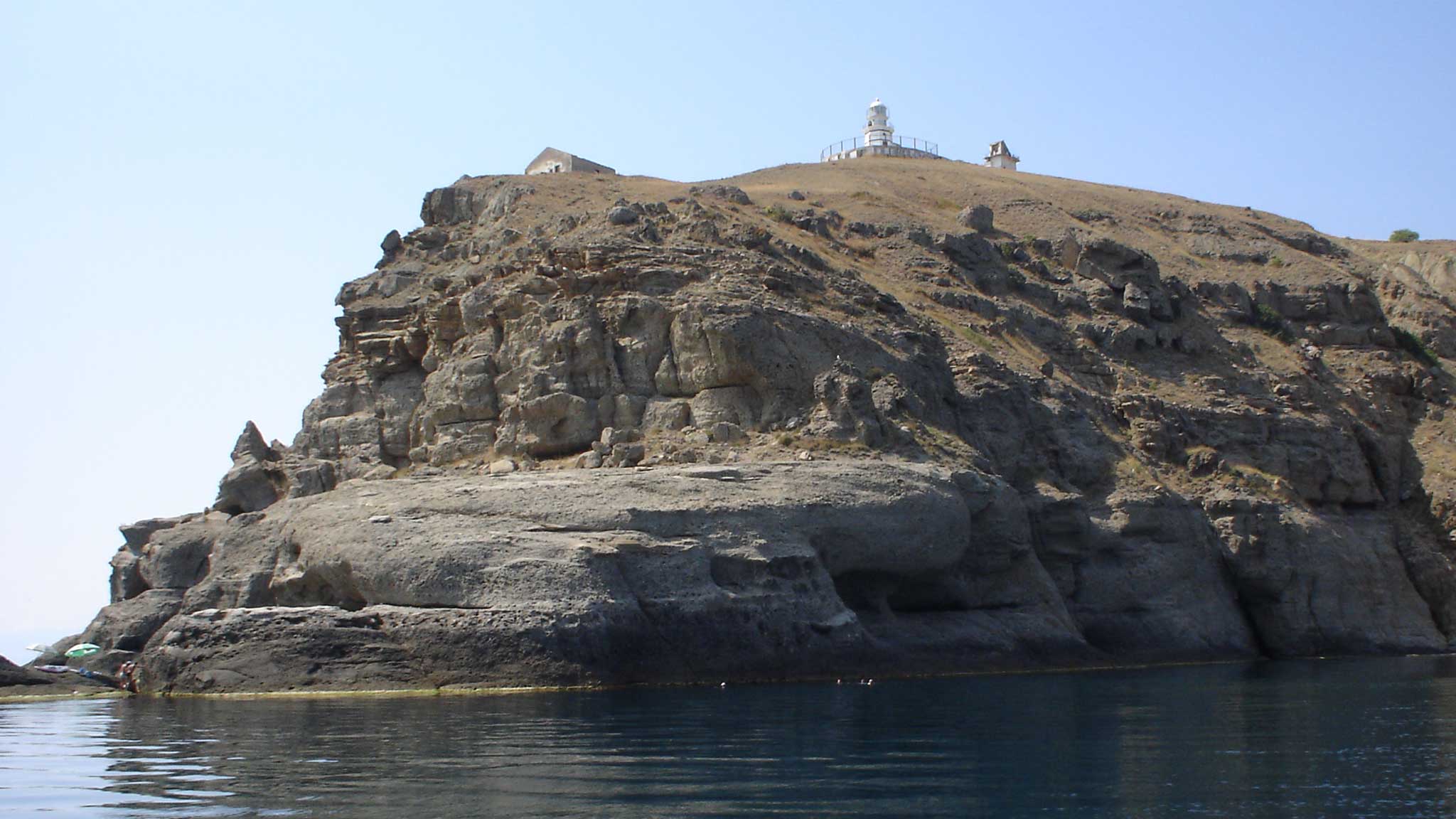 Самая заметная достопримечательность здесь – это маяк. Он действующий, к нему ведет хорошо накатанная дорога, отсюда открываются красивые панорамы. Маяк построили в конце 19 века, чтобы сделать безопасным путь кораблей вдоль берегов Крыма. Выдающийся глубоко в море мыс Меганом для них был по-настоящему опасен, особенно ночью и в туман.