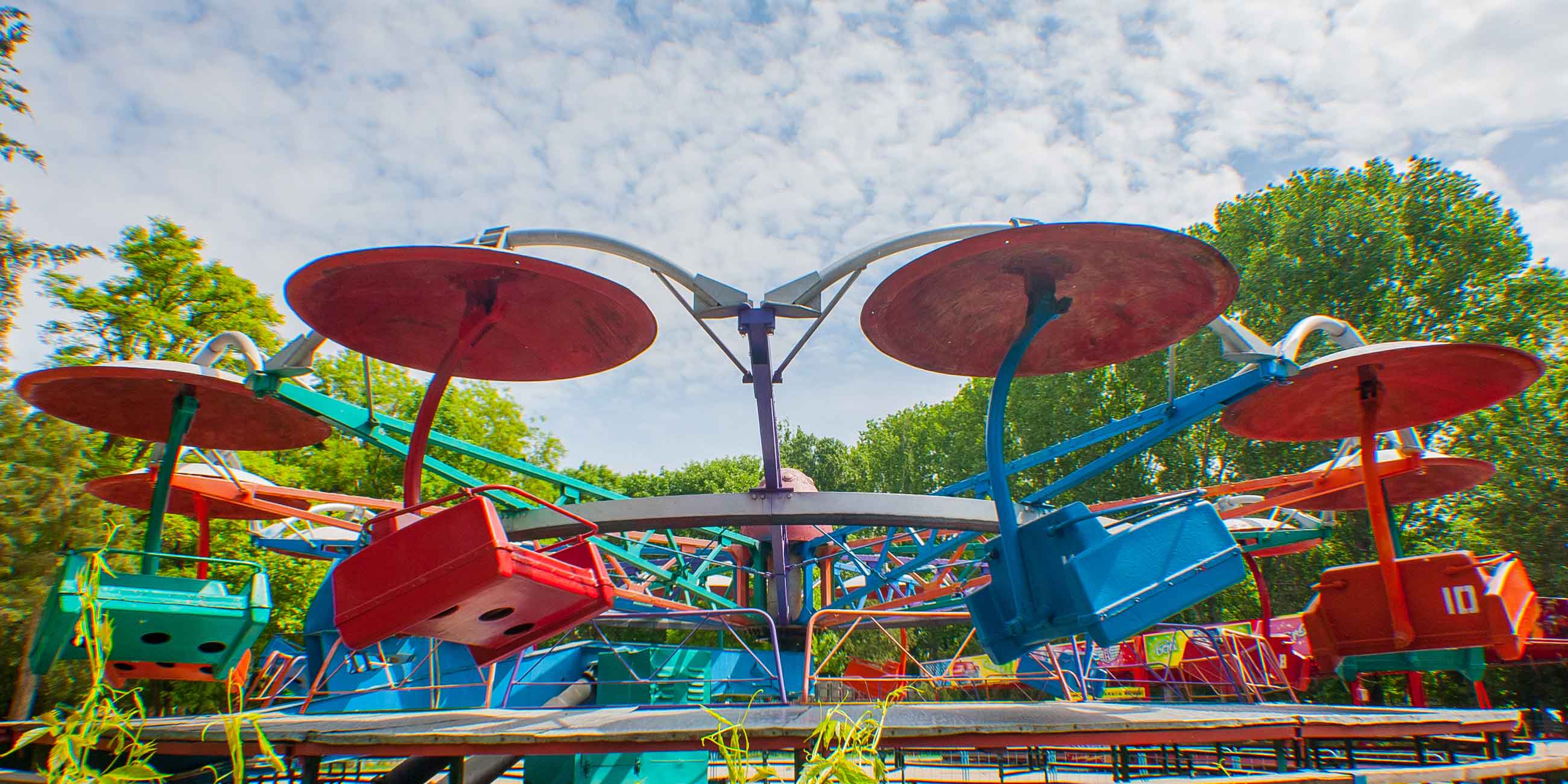 Здесь есть карусели для самых маленьких, для них же паровозик и батуты. Для детей постарше выбор большой. Среди экстремальных аттракционов — «Топ-Спин» (кабинка постоянно качается, взлетая на огромную высоту, при этом крутиться вокруг своей оси) или «Катапульта» (своего рода гигантская рогатка). Можно пойти в «Комнату ужасов», зеркальный лабиринт или на автодром. А еще есть отличный комплекс для лазания «Джунгли».