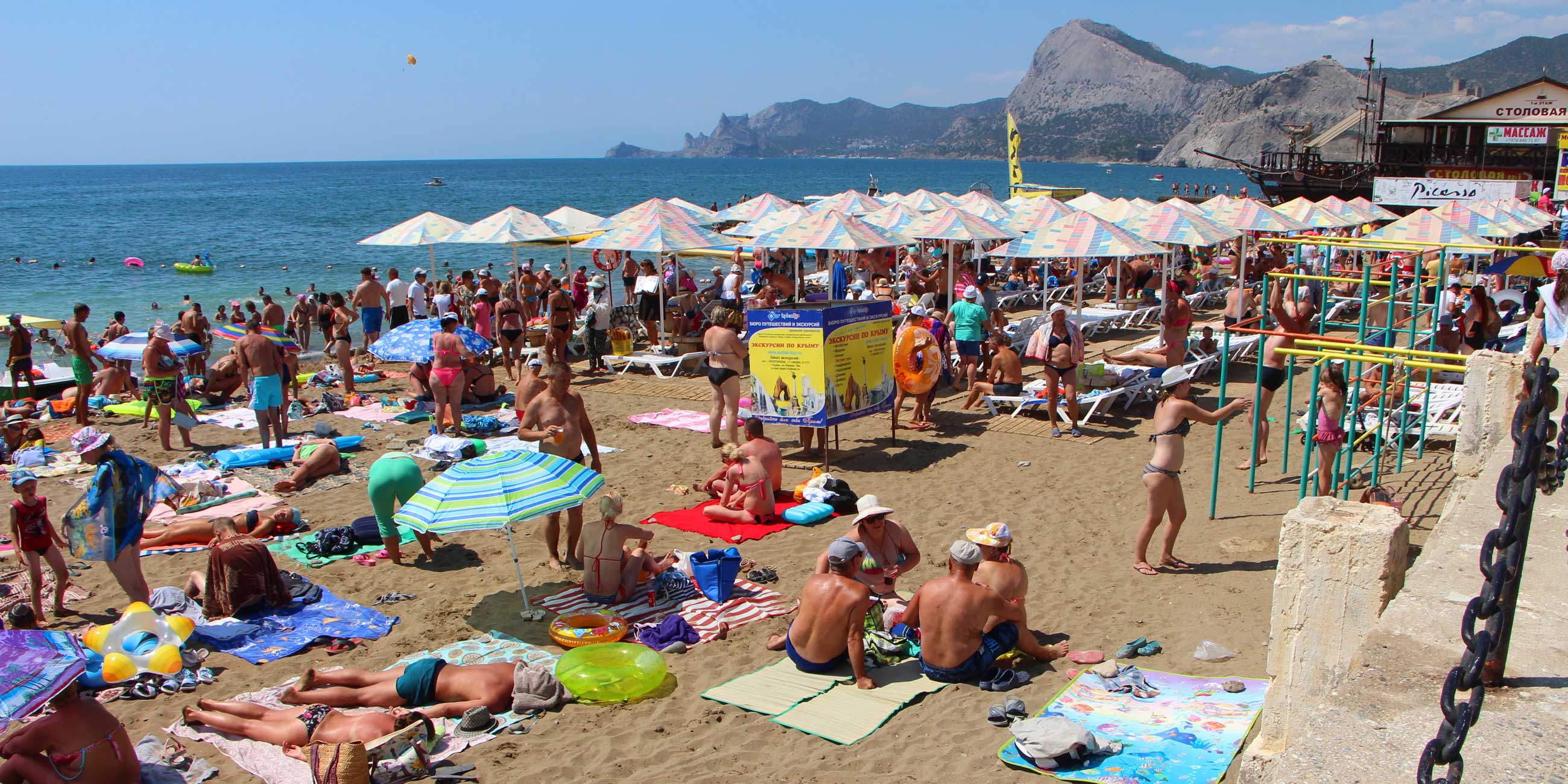 Пляж находится в самом центре береговой линии Судакской бухты. Он большой и просторный, но оценить эти преимущества можно, пожалуй, только в межсезонье, когда туристов в городе немного. Летом уже в 9 часов утра сложно найти свободное место.