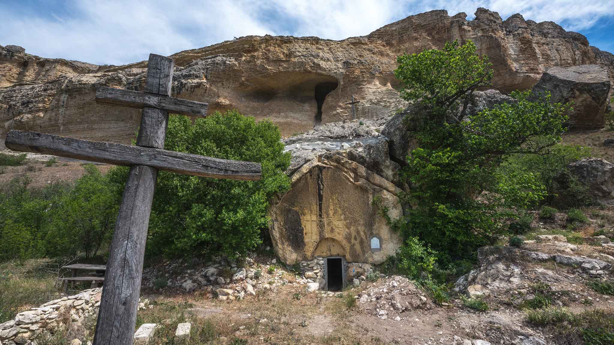 Этот маршрут для тех, кто любит нехоженые тропы и малоизвестные места. Даже многие крымчане не знают о вырубленной в скале еще в VIII веке церкви близ села Курское на горе Бор-Кая. А между тем, это не только очень красивое, но и интересное место. Тут прямо в отвесной скале прорублена дверь, ведущая в довольно обширное помещение с алтарем, на котором стоят принесенные разными людьми в разное время иконы. От всего этого веет глубокой древностью, и кажется, что пещерный храм существует вне времени и пространства.