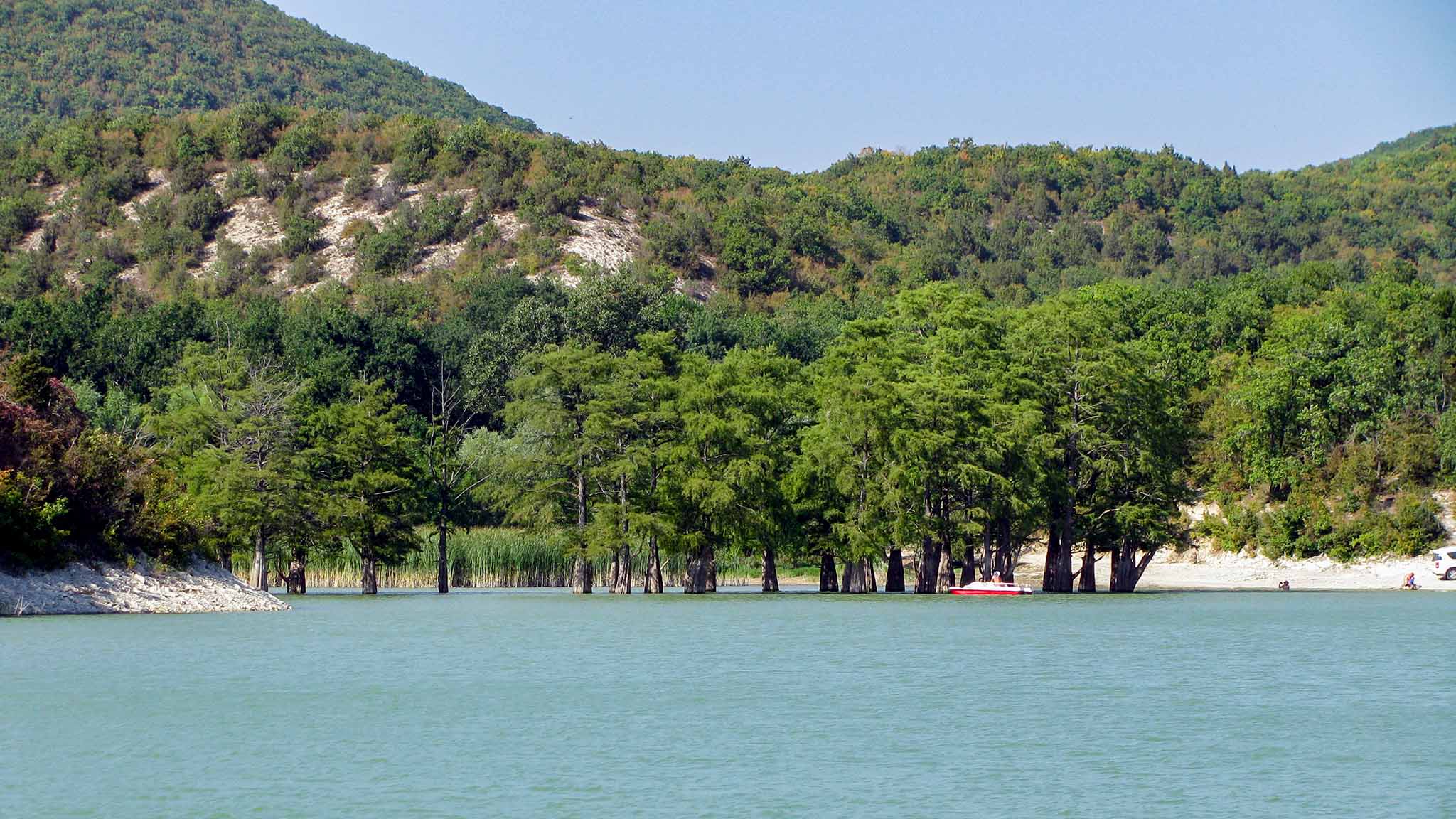 В воде озера растут 32 кипариса. По одной из версий, они были завезены на территорию Кубани еще в начале XX века и прижились именно здесь. Насладиться чудесным видом озерной глади и тенистых кипарисовых ветвей приезжают со всех концов России, поэтому в окрестностях озера появился одноименный парк развлечений, который подходит как для любителей экстрима, так и семейного отдыха с маленькими детьми. Здесь есть пляжная территория, пункт проката инвентаря (катамаран, каяк, каноэ, лодка), беседки с мангальными зонами, место для рыбалки. Изюминка парка — зиплайн — это аттракцион, благодаря которому на специальном тросе можно пролететь над озером.