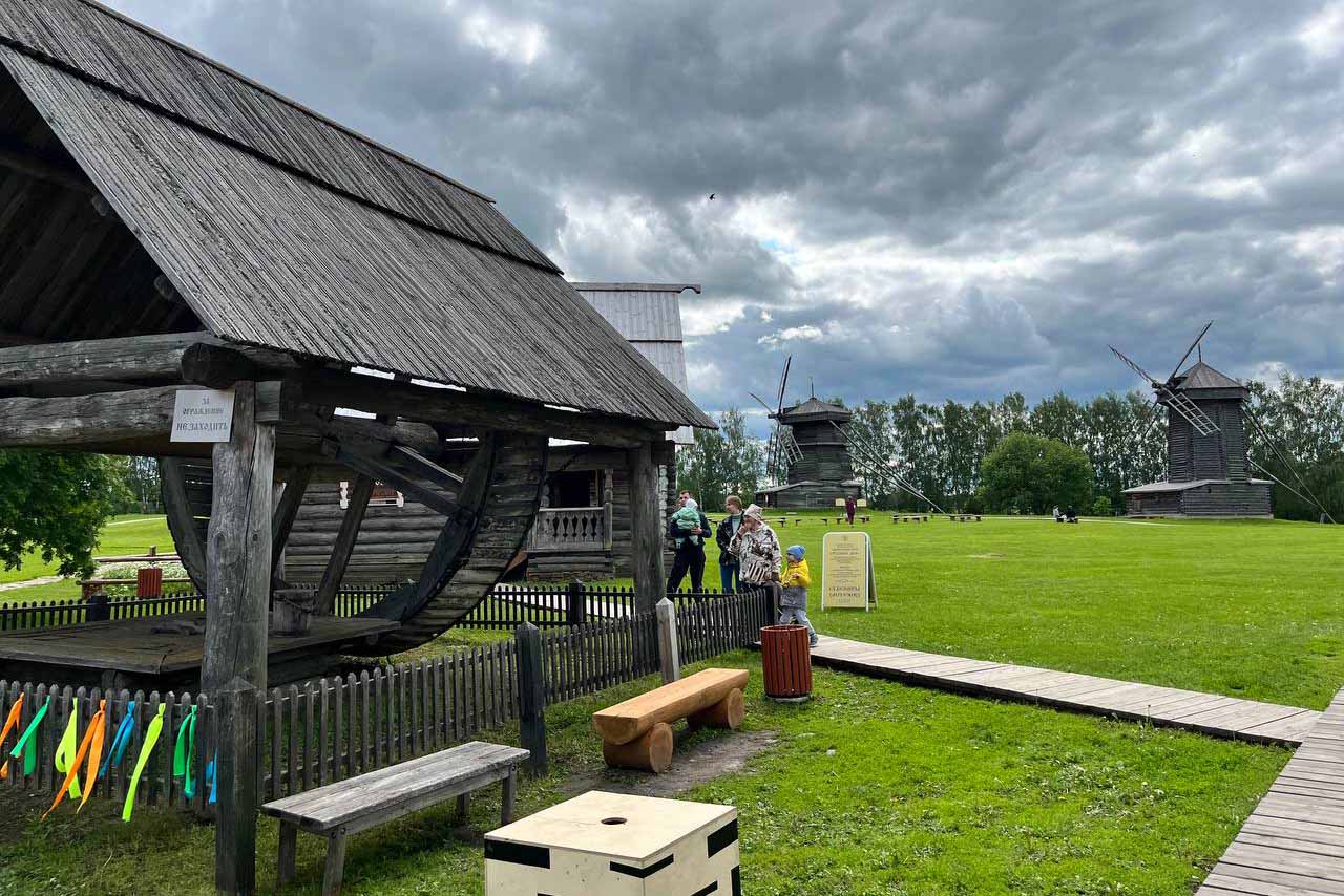 Музей деревянного зодчества занимает огромную живописную территорию, располагаясь под открытом небом на высоком берегу реки. Можно сделать несколько кадров рядом с мельницей или церковью, запечатлеть крестьянские избы или общий вид музея.