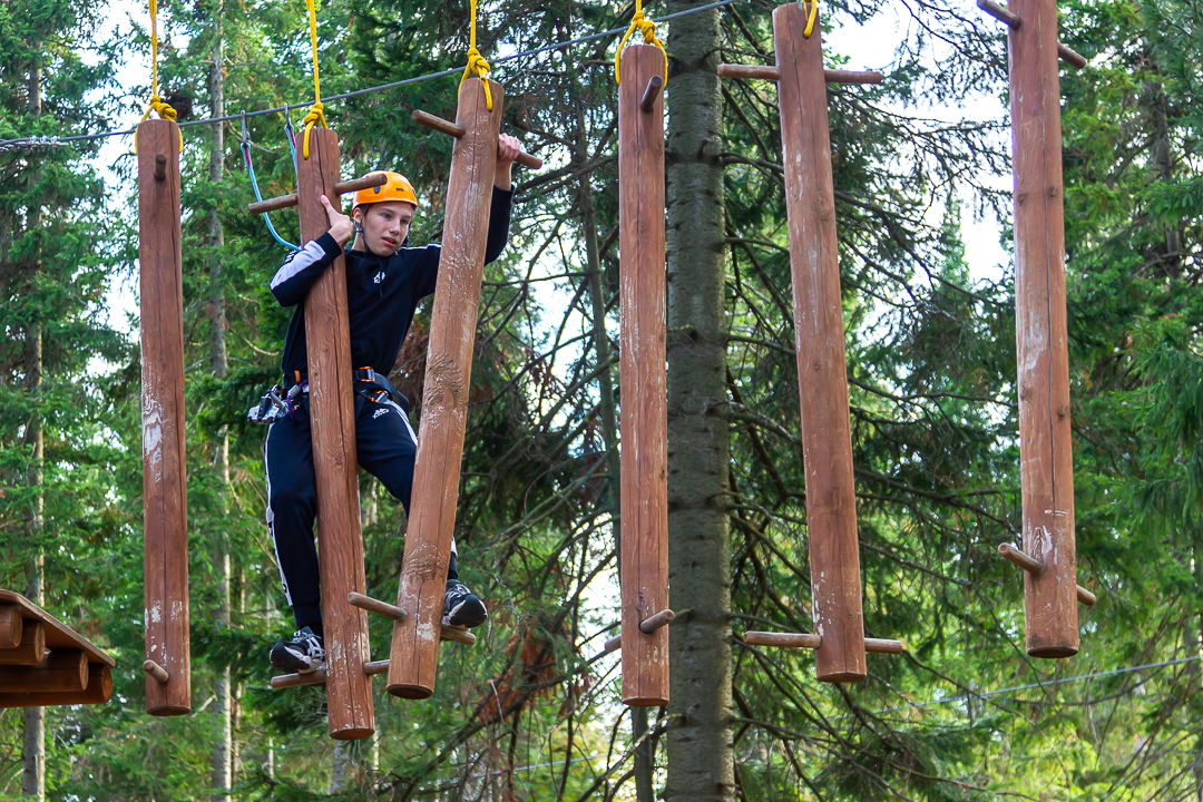 Курорт находится в русле реки Сузгунка среди крутых склонов, покрытых хвойным лесом. Здесь стоит ловить свежий воздух и отличные виды. Нам повезло застать золотую осень именно здесь. Зимой сюда приезжают лыжники и сноубордисты — местные склоны отлично подходят для начинающих. А в теплое время года работают лазертаг и веревочный парк. Кроме этого, у подножья основного склона курорта есть небольшое живописное озерцо, где можно поплавать или закинуть удочку.