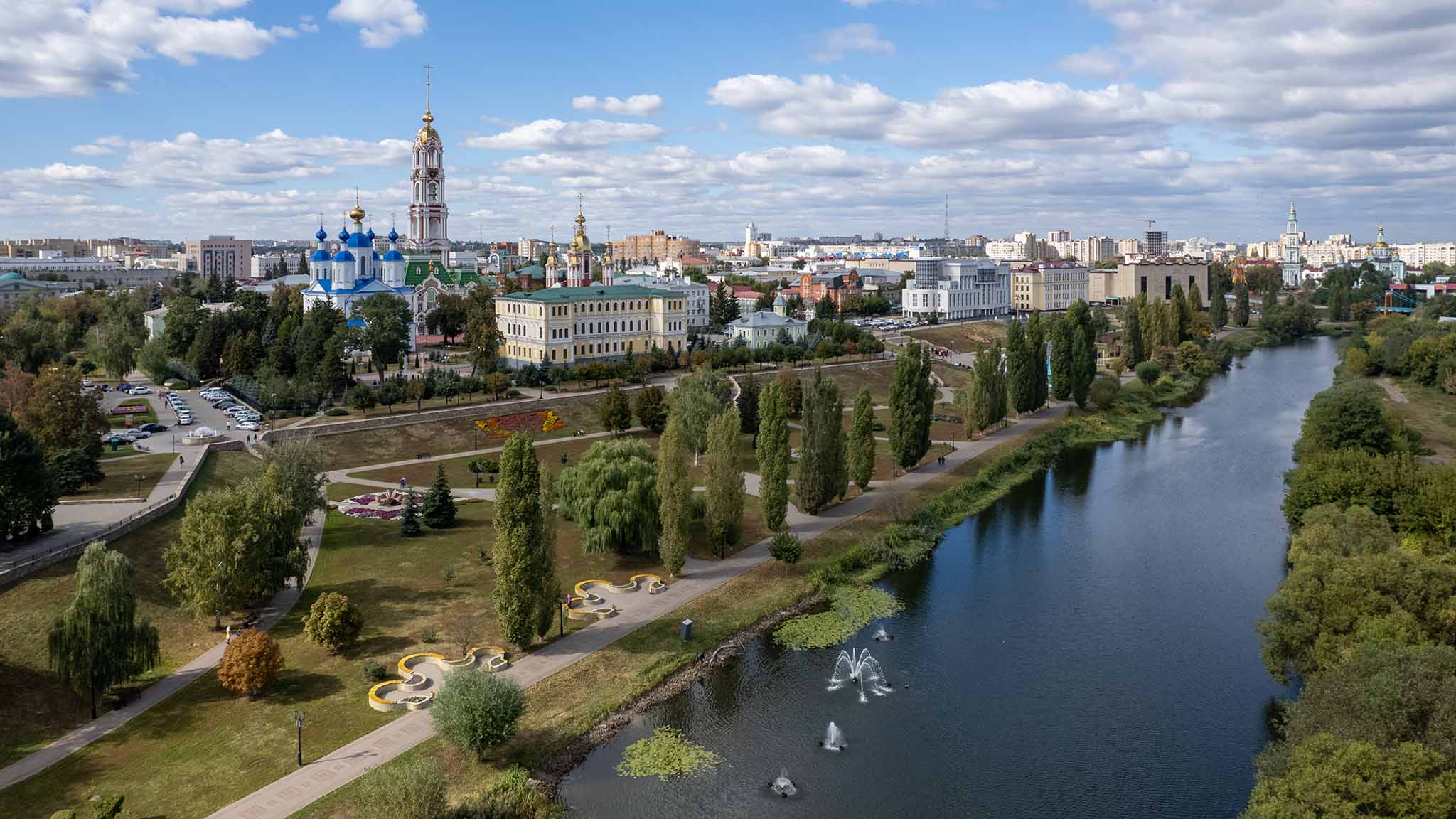 Одно из любимых мест отдыха горожан и гостей Тамбова. Здесь можно прогуляться по аллеям, рассмотреть памятники, подняться на смотровые площадки и увидеть знаковые места города с высоты. В летнее время приятно полюбоваться яркими цветочными композициями и лазерной проекцией Плавучего фонтана. На набережной расположены «Усадьба Асеевых», Мост влюбленных, Памятник Петру и Февронии, а также древний Покровский собор. У канала реки Цны находится Кронштадтская площадь, которая знаменита парком «Сочи» с большим количеством пешеходных дорожек и клумб.