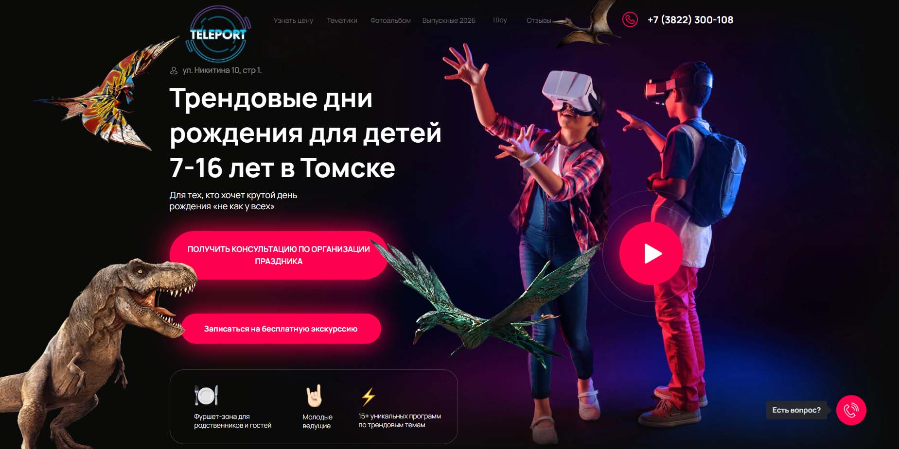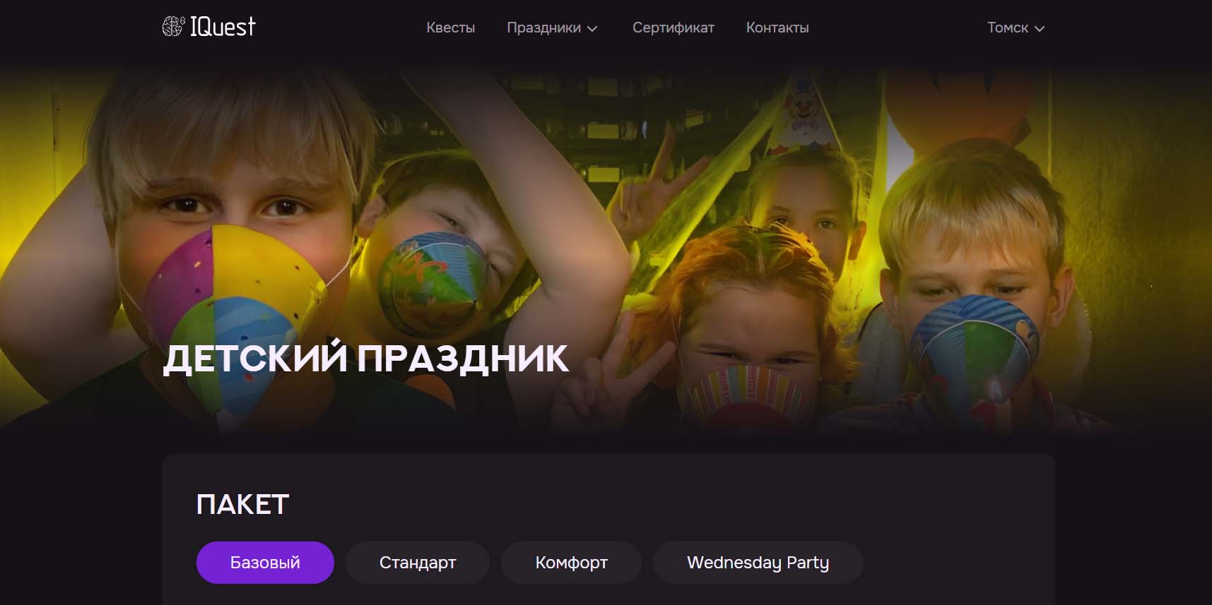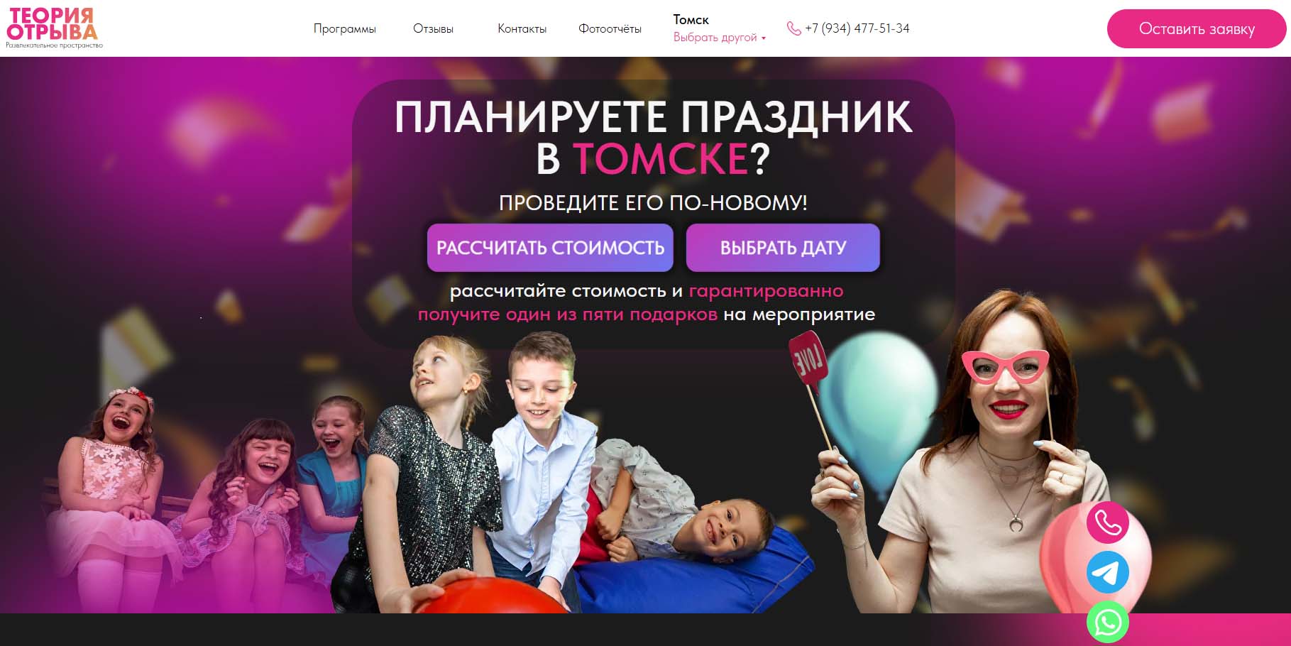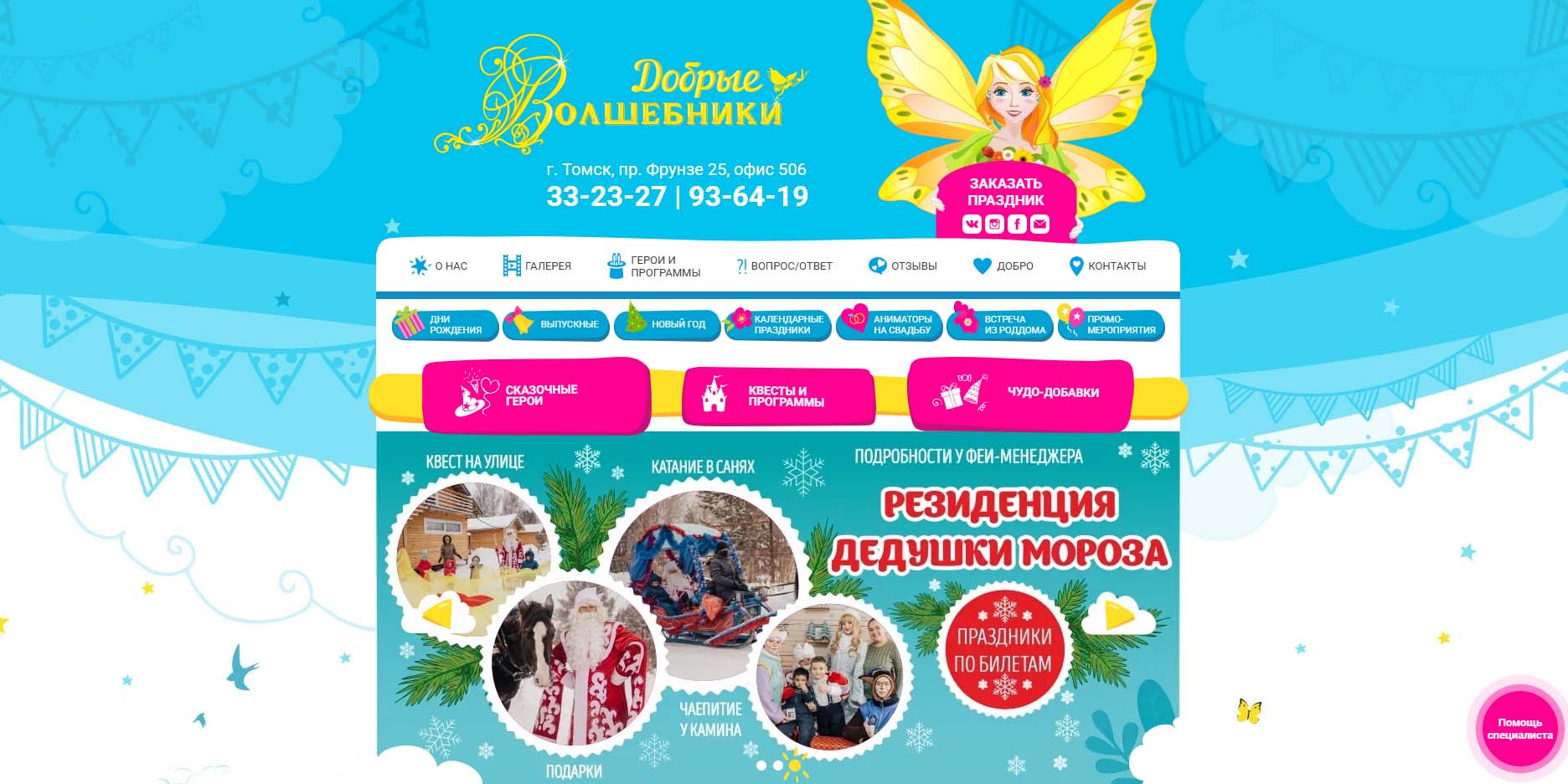 Команда проводит детские праздники в Томске уже больше 10 лет и за это время успела накопить большой опыт общения с детьми. Малышам здесь предложат отметить праздник с любимыми мультяшными героями — поиграть, потанцевать и вдоволь посмеяться. Для детей постарше подготовят интересные квесты и тематические вечеринки. Любителям необычного и познавательного подойдут творческие мастер-классы. А еще каждую компанию гостей ждут чудо-добавки — научные опыты, шоу фокусников, дискотеки и другие развлечения.