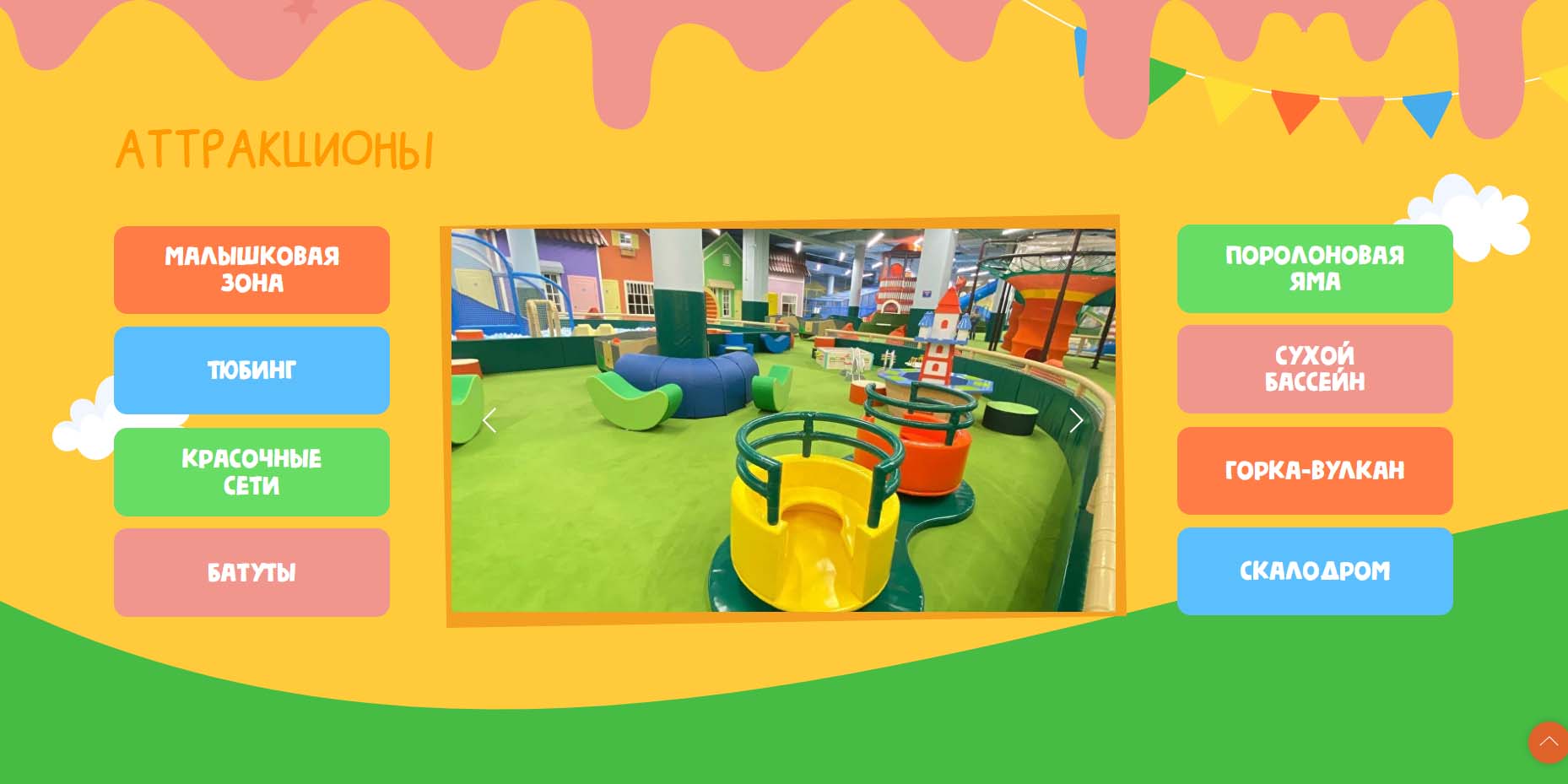 Для празднования дней рождения оборудована просторная игровая зона с горками, батутами и полосой препятствий. В создании программ участвуют профессиональные педагоги, которые знают особенности и предпочтения детей разного возраста. Каждая программа создана с учетом изучения трендов в сфере детских развлечений. Помимо развлечений, дети в игровой форме получают полезные и важные навыки общения, логического мышления. На базе парка работает кафе, в котором после активных игр можно организовать праздничный стол.