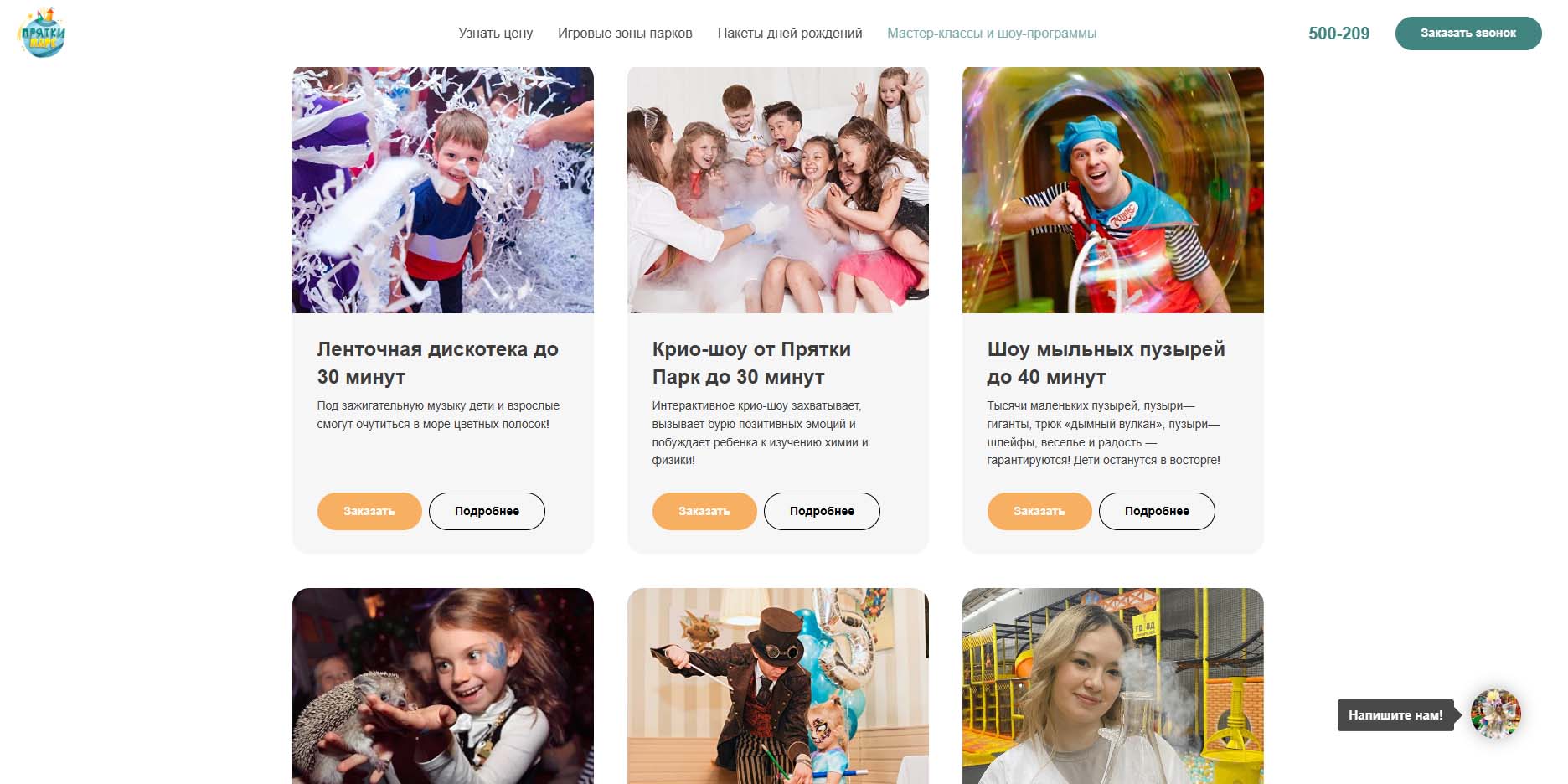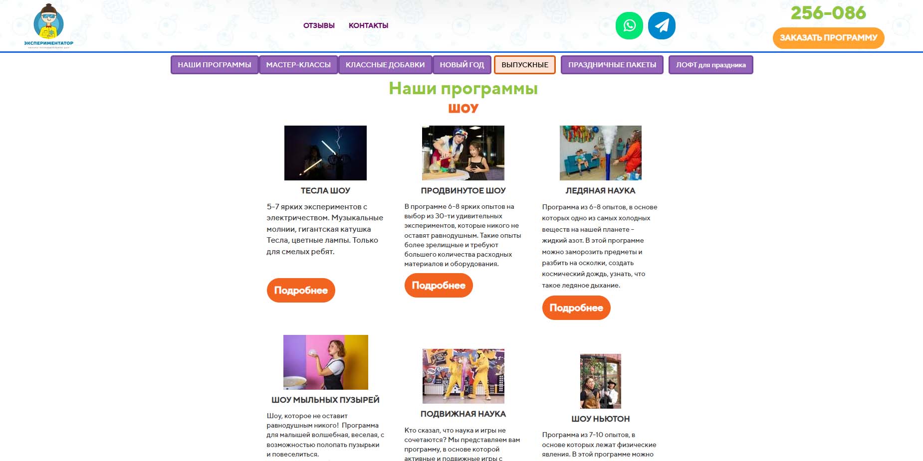 | Научное шоу | от 2500 рублей |