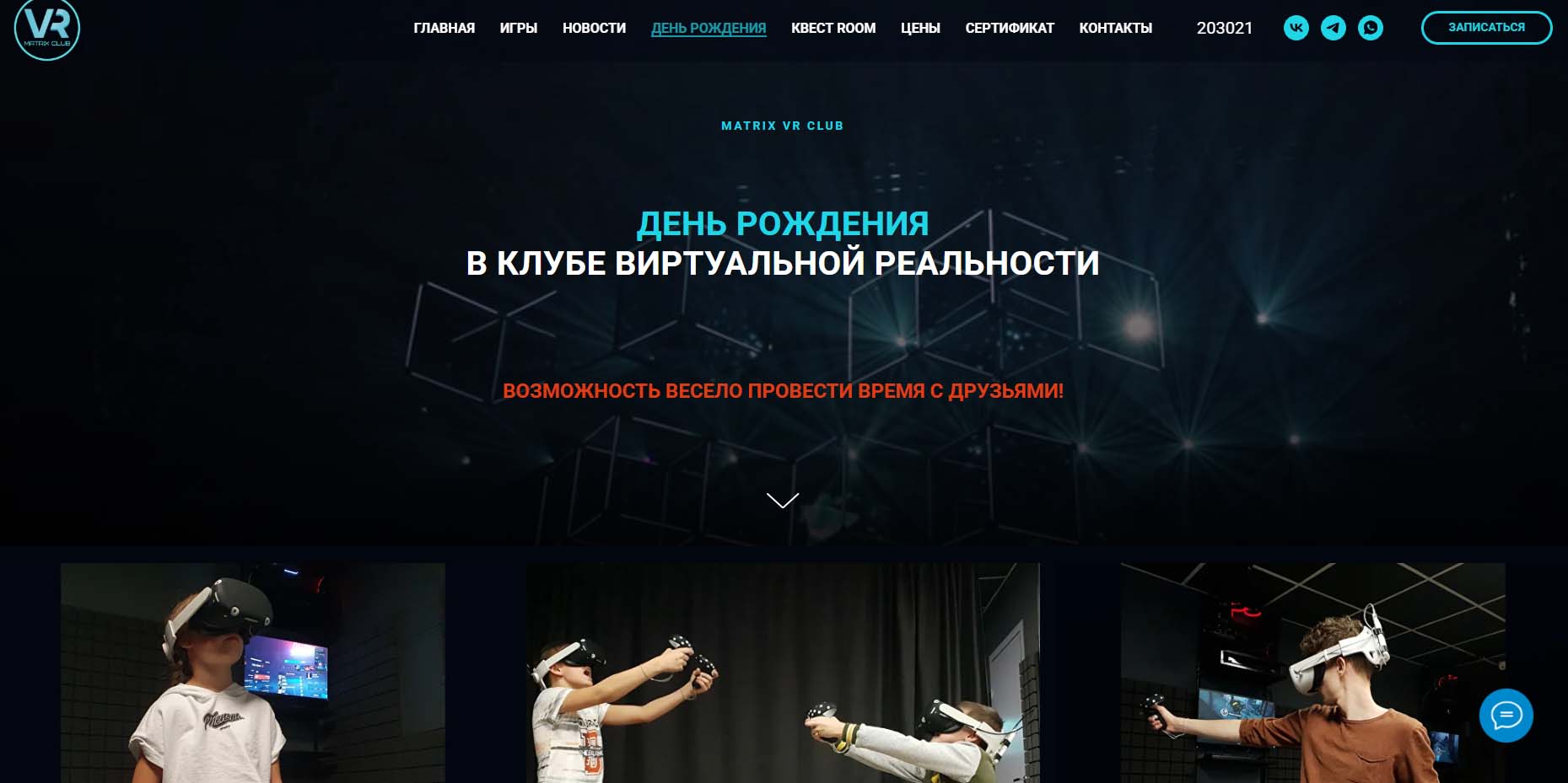 Клуб виртуальной реальности приглашает отметить день рождения тех, кто хочет необычный праздник. Здесь есть чем занять гостей любого возраста и чем удивить себя. Можно погрузиться в любой из множества развлекательных миров виртуальной реальности. В библиотеке клуба более 300 совместных и одиночных игр и квестов. Гости могут играть самостоятельно или компанией друг с другом, а также с другими игроками по сети. С собой можно принести еду и безалкогольные напитки.