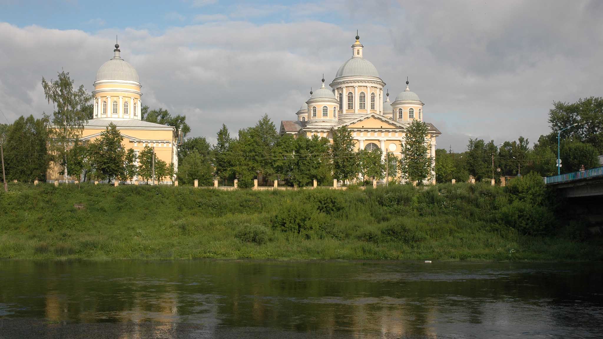 Первый храм на «нижнем городище» появился в 1163 году, а в 1364-м на пожертвования состоятельных купцов прямо на берегу Тверцы построили новый белокаменный собор. К началу XIX века обветшавшее здание разобрали и возвели высокую церковь в лучших традициях классицизма. Строительство, в котором принимал участие знаменитый зодчий Карл Росси, продолжалось целых 10 лет, но в результате Торжок получил великолепный пятиглавый собор.