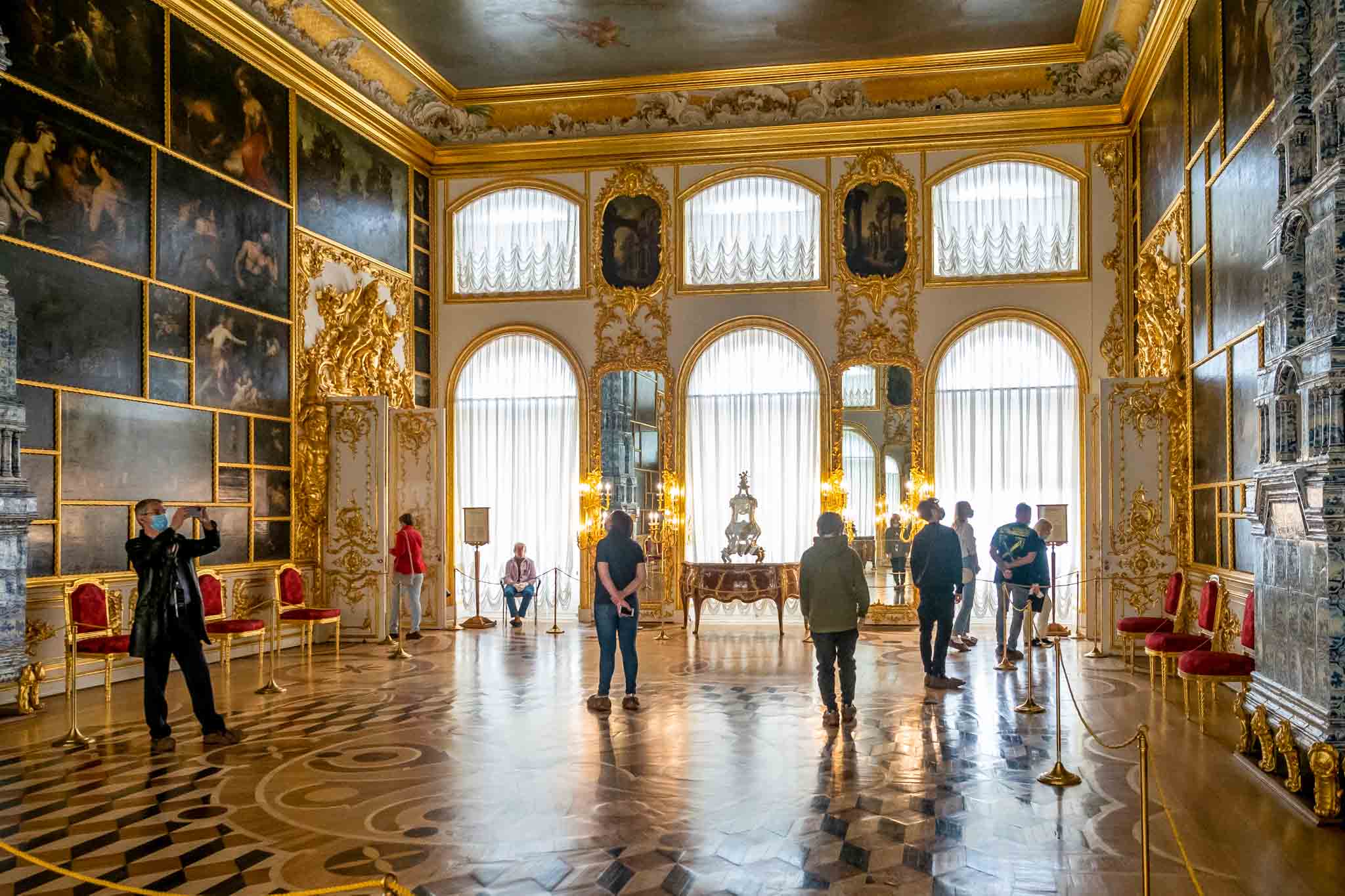 Екатерининский дворец полон великолепных залов, но самым популярным местом для туристов остается Янтарная комната. Ее подарил Петру I король Пруссии. Обновили комнату при Елизавете Петровне. Для облицовки стен было потрачено 6 тонн янтаря! Шедевр был похищен фашистами во время Великой Отечественной войны. Полностью восстановили интерьер и открыли комнату для посетителей только в 2003 году — к 300‑летию Санкт-Петербурга.