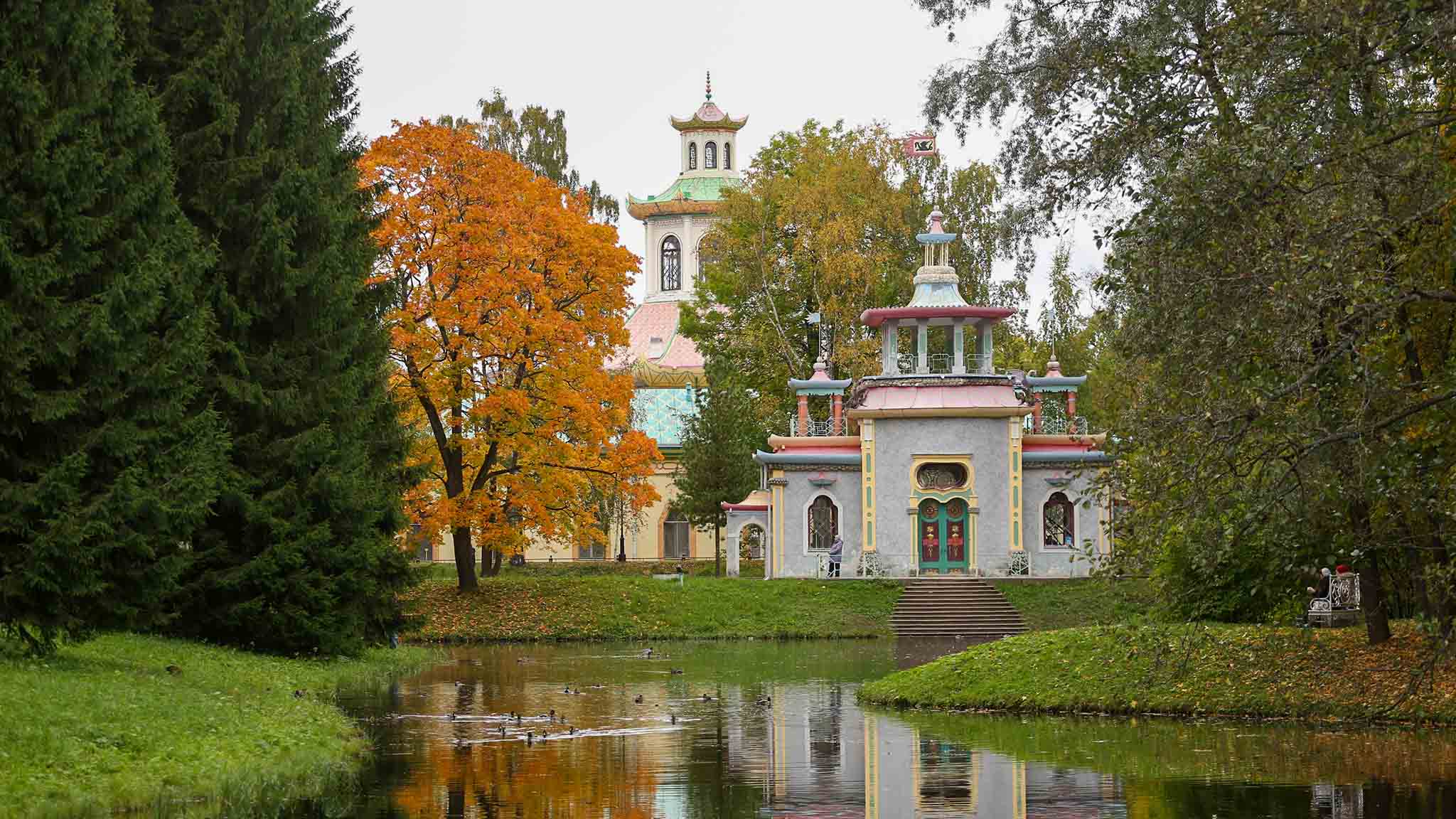Екатерининский парк — прекрасное место для неспешных прогулок. Многочисленные скульптуры, изысканные павильоны, клумбы с осенними цветами и Большой пруд, где плавают утки. Екатерининский дворец поражает туристов красотой и убранством. В осенние месяцы, когда туристический ажиотаж спадает, есть возможность без очереди войти в императорские покои, походить по залам и увидеть одну из главных достопримечательностей дворца — Янтарную комнату.