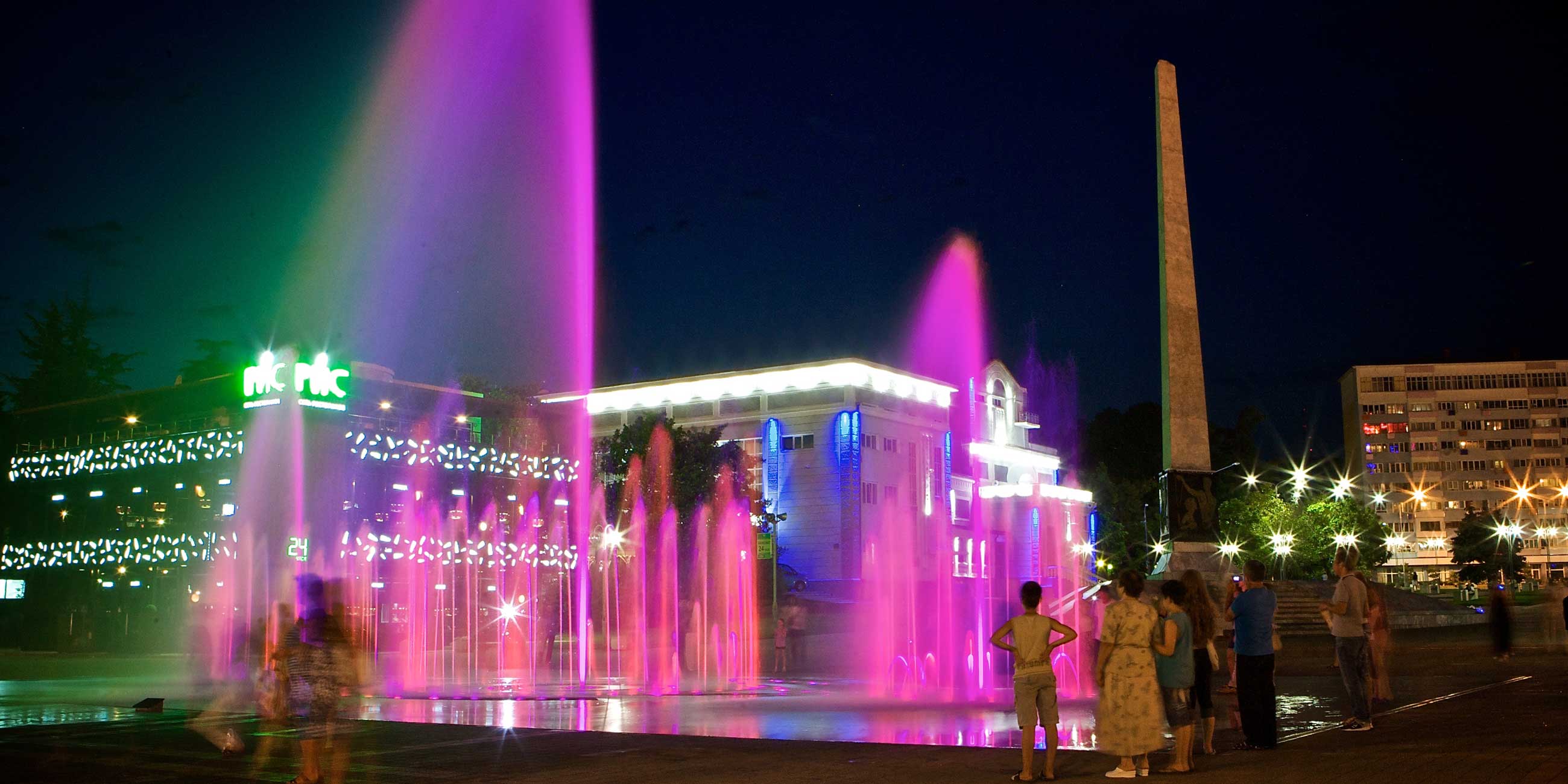 Высокие водяные столбы подсвечены разноцветными огнями и пульсируют под музыку. Увидеть это вечернее шоу стараются все туристы. Фонтан «Поющий» на площади имени Октябрьской Революции в Туапсе — одна из самых посещаемых достопримечательностей курорта.