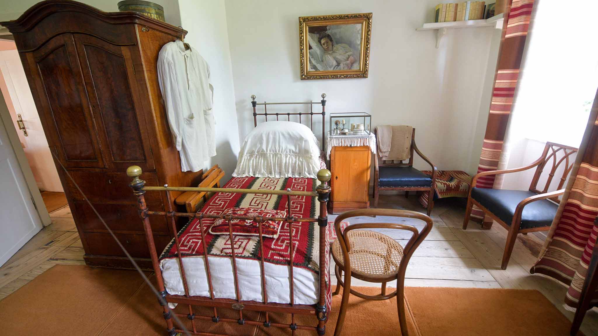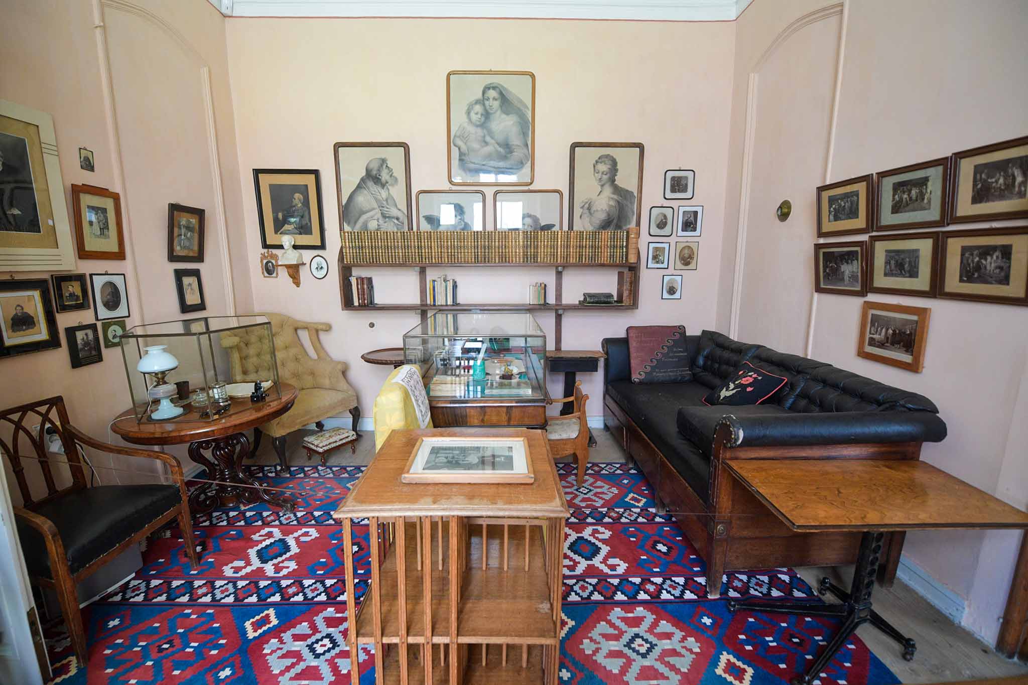 В кабинете Льва Толстого стоит диван, на котором родился он сам, его братья и сестра и 11 детей писателя. Внизу есть три ящика, в которых при жизни классика хранились его рукописи.