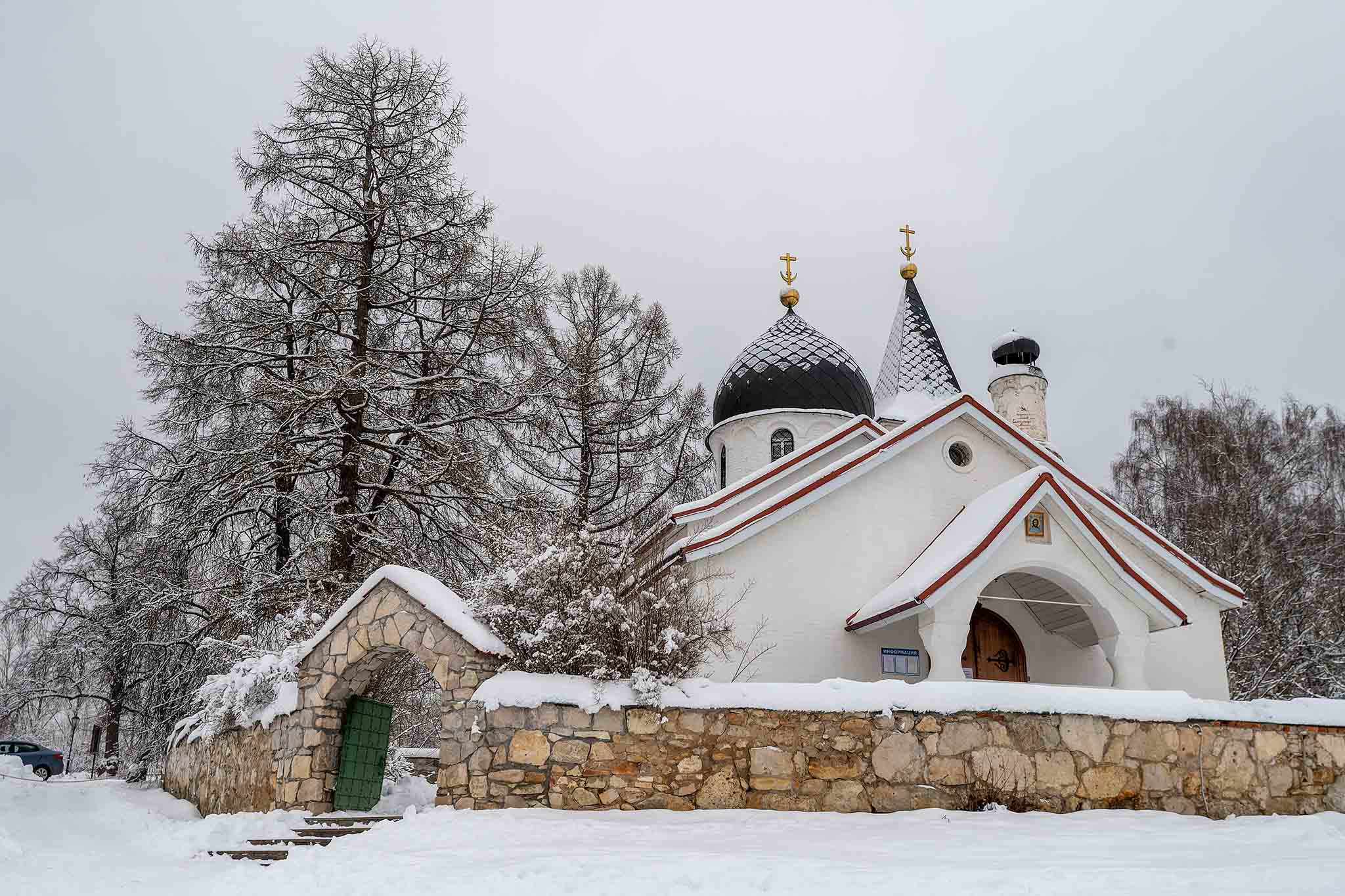 Неподалеку располагается кладбище, где похоронен Василий Поленов. С холма открывается потрясающий вид на красавицу Оку, а вымощенная камнем тропинка приведет вас к святому источнику.
