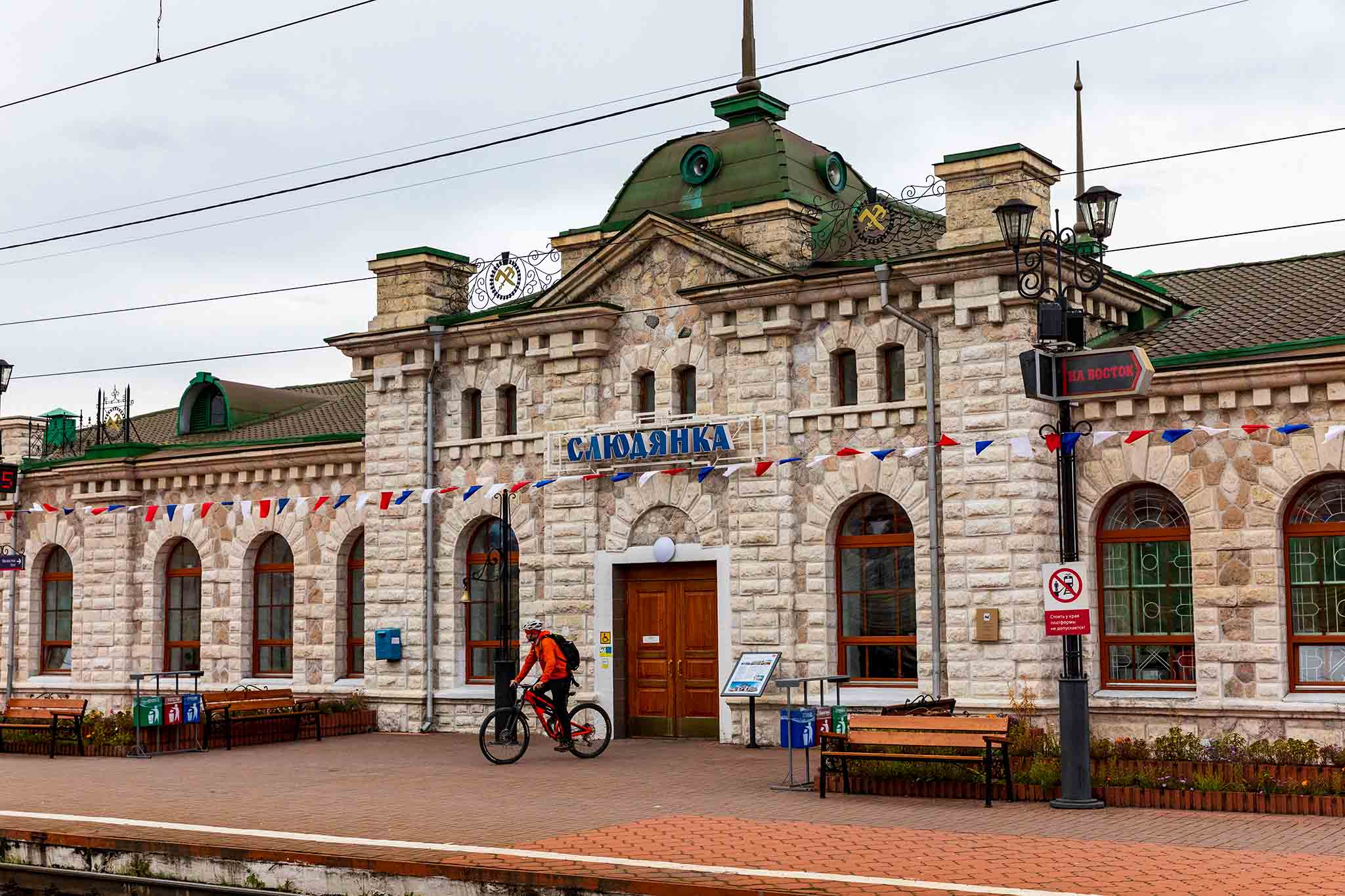 Здесь поезд стоит несколько часов. Можно выйти и прогуляться по вокзалу. Есть что посмотреть: здание полностью состоит из мрамора. Других таких станций или вокзалов в мире нет. В облицовке и конструкции использовали четыре вида байкальского мрамора. Камень красиво бликует под светом фонарей (стоянка вечерняя). Внутри вокзала есть интерактивный музей, куда бесплатно пускают пассажиров «Байкальского экспресса».