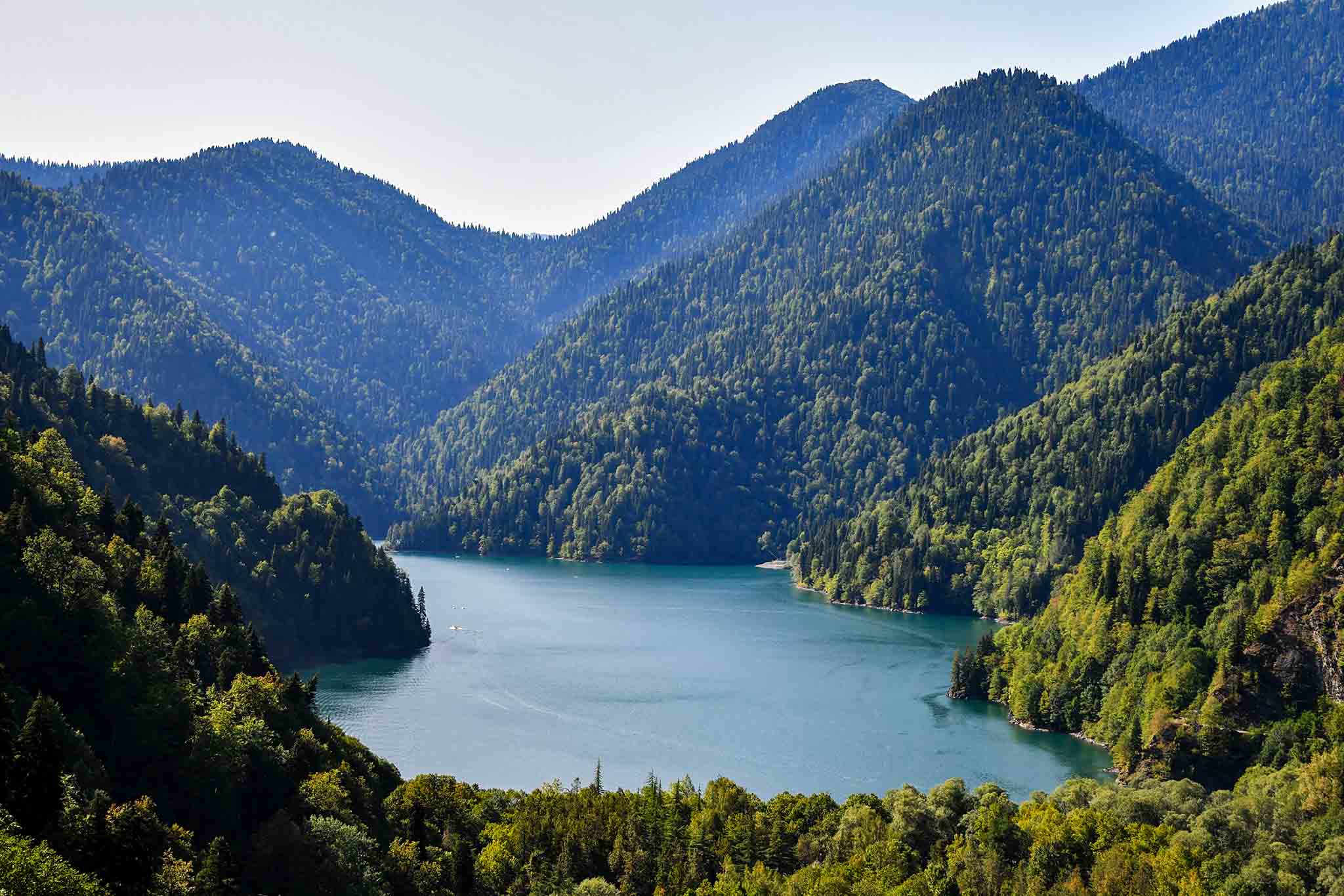В ложбине, укутанной горными хребтами, на высоте 950 метров в Абхазии есть озеро с кристально чистой водой. Ее цвет меняется в разное время года — в зависимости от погоды. При этом водоем довольно холодный — даже жарким летом Рица не прогревается выше +18 градусов Цельсия.