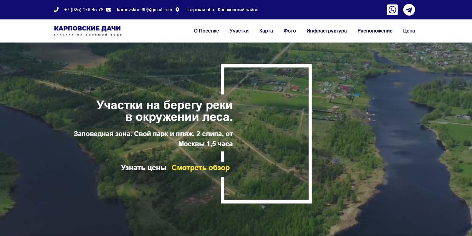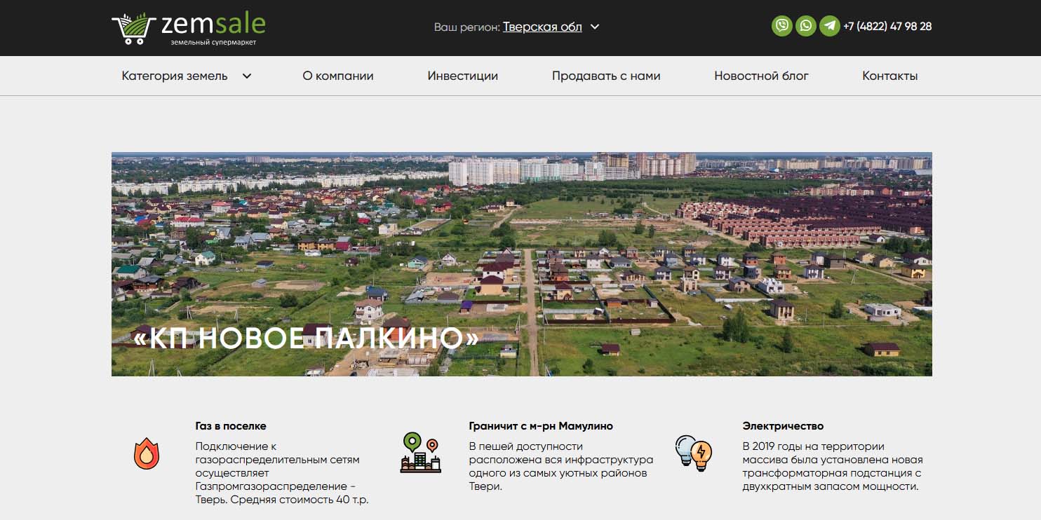 Продают участки для частного домостроения (от 11 до 22 соток). Газ, водопровод и электричество проведены централизовано к границе участков. В поселке сеть асфальтированных дорог. Есть освещение и охрана. Ближайший город — Зубцов, через который проходит трасса М-9.