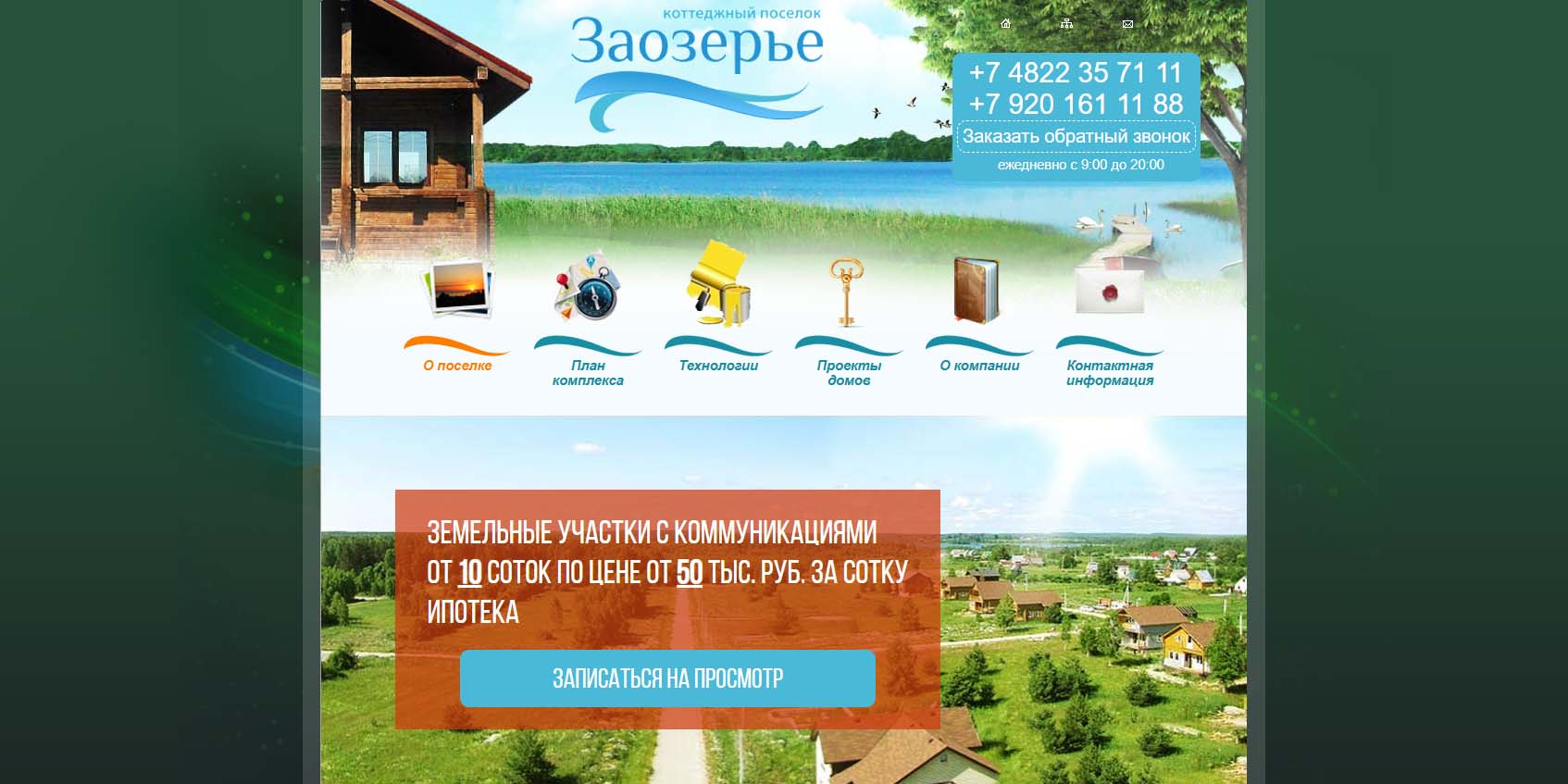В поселке рядом с населенным пунктом Вышний Волочек выделено 283 участка под усадьбы. Территория поделена на 4 зоны: можно выбрать локацию поближе к главному въезду или подальше в лесу. Есть территории с выходом к пляжу — поселок расположен рядом с озером Тубосс. Это не единственный водоем в непосредственной близости: кругом вереница рек, озер и других водоемов — раздолье для охотников и рыболовов.
