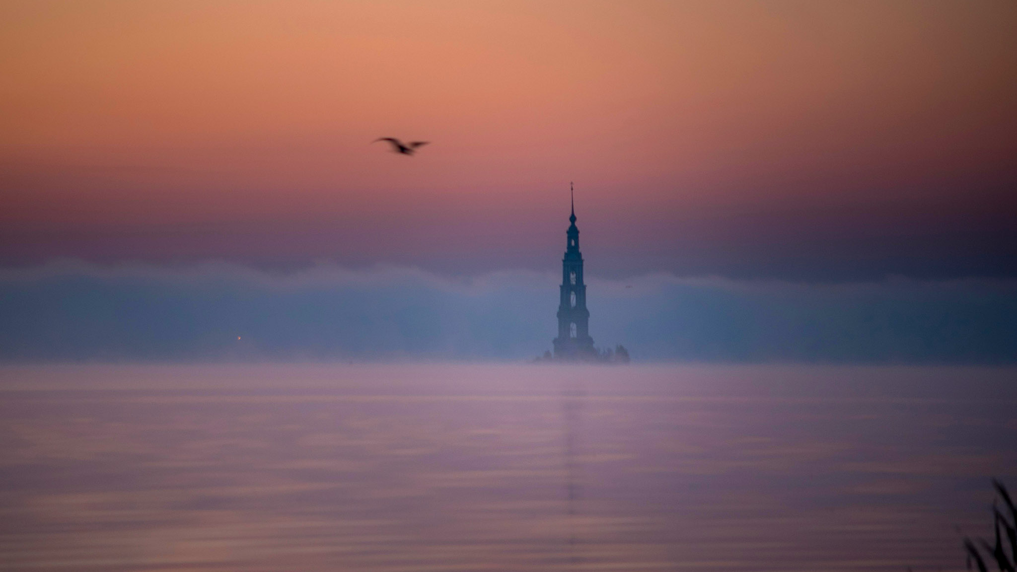 В 30-е годы прошлого века во время строительства Угличской ГЭС была затоплена старая часть Калязина вместе с улицами, домами, церквями. 75-метровая колокольня Никольского собора тоже оказалась затопленной, но ушла под воду не полностью. Вначале ее использовали как маяк, а со временем она стала туристическим символом города. Зимой до колокольни можно добраться по льду, летом — на моторной лодке. В 2021 году колокольня стояла в лесах, велась реставрация, в результате которой ее укрепили и сделали красивую подсветку.