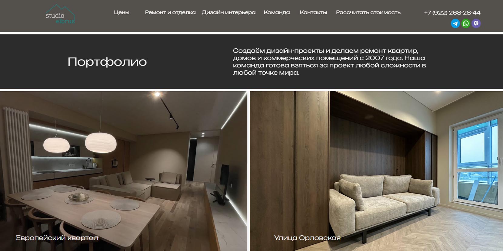 Студия дизайна интерьеров, ремонта и комплектации работает на рынке с 2016 года. Разработали более 1000 дизайн-проектов, реализовали более 200 объектов. Есть свой шоу рум с материалами, сотрудничают напрямую с поставщиками и с производителями. У студии есть полностью укомплектованное строительное управление — начиная от узких специалистов и заканчивая разнорабочими. На сайте компании есть много фото завершенных ремонтов.