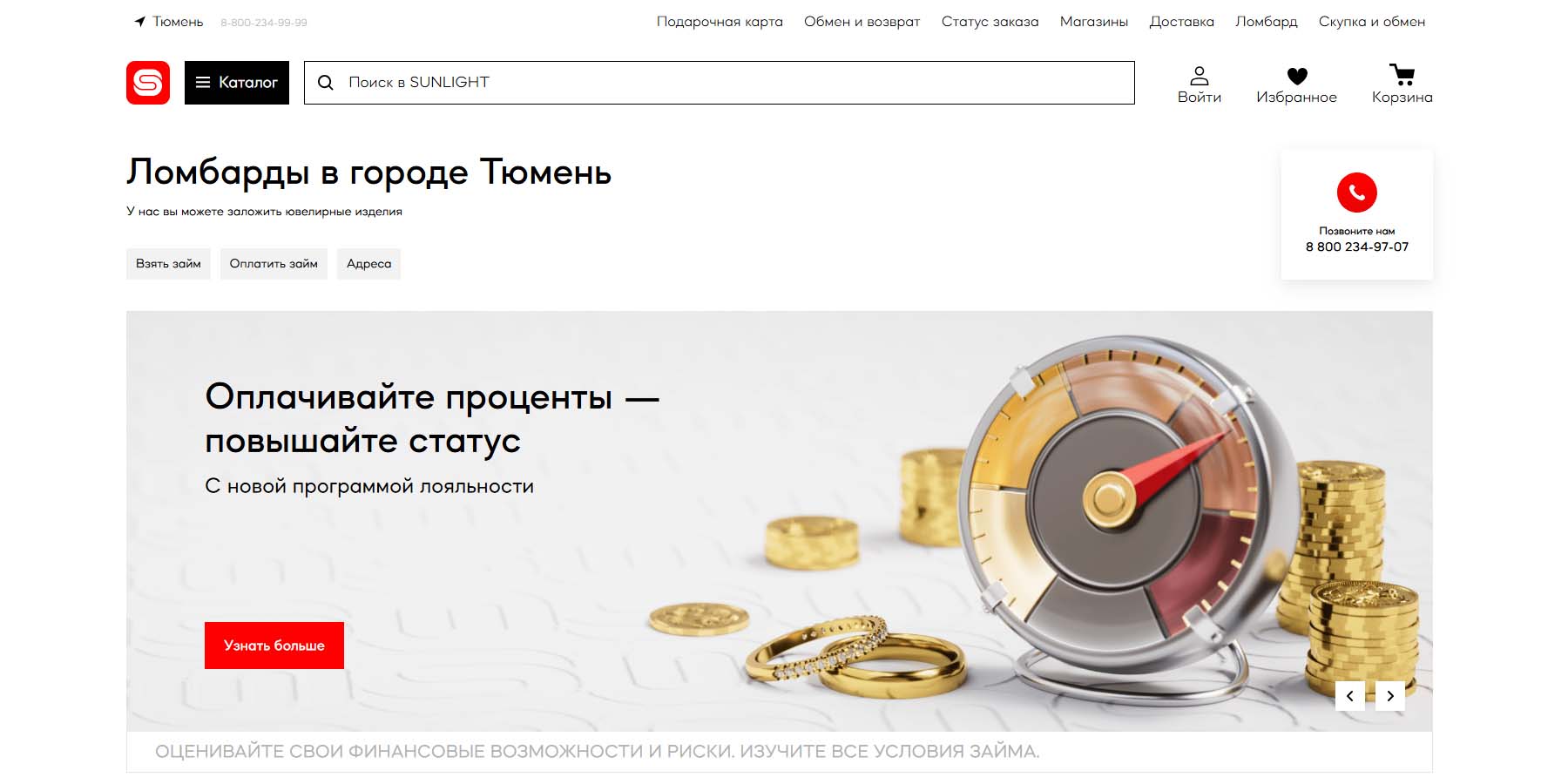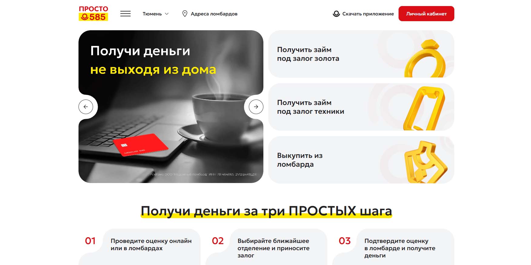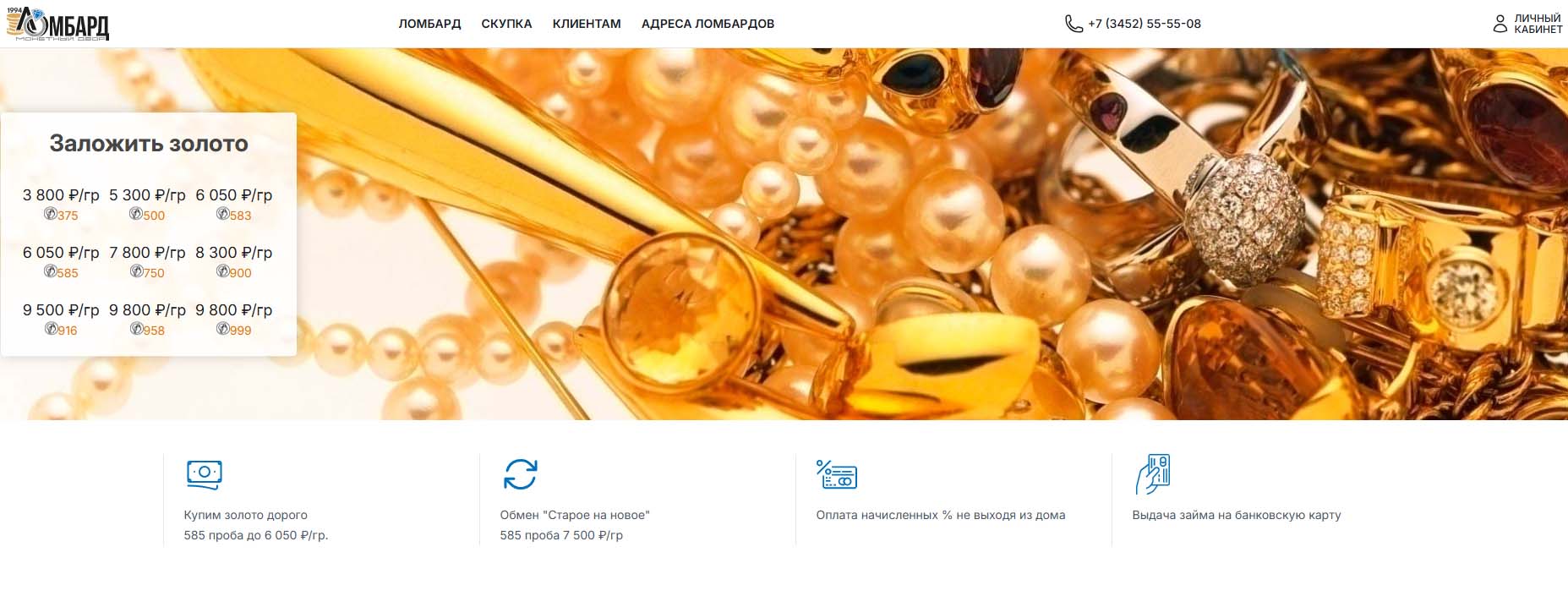 Входит в федеральную сеть ломбардов, относящихся к ювелирным магазинам. В Тюмени филиалы работают по 15 адресам, где можно получить ломбардное кредитование. В отзывах клиенты отмечают профессионализм сотрудников при личном общении. В залог принимаются ювелирные украшения, оценка проводится на базе ломбарда. Доступна услуга онлайн-консультации с ответами на вопросы по займу.