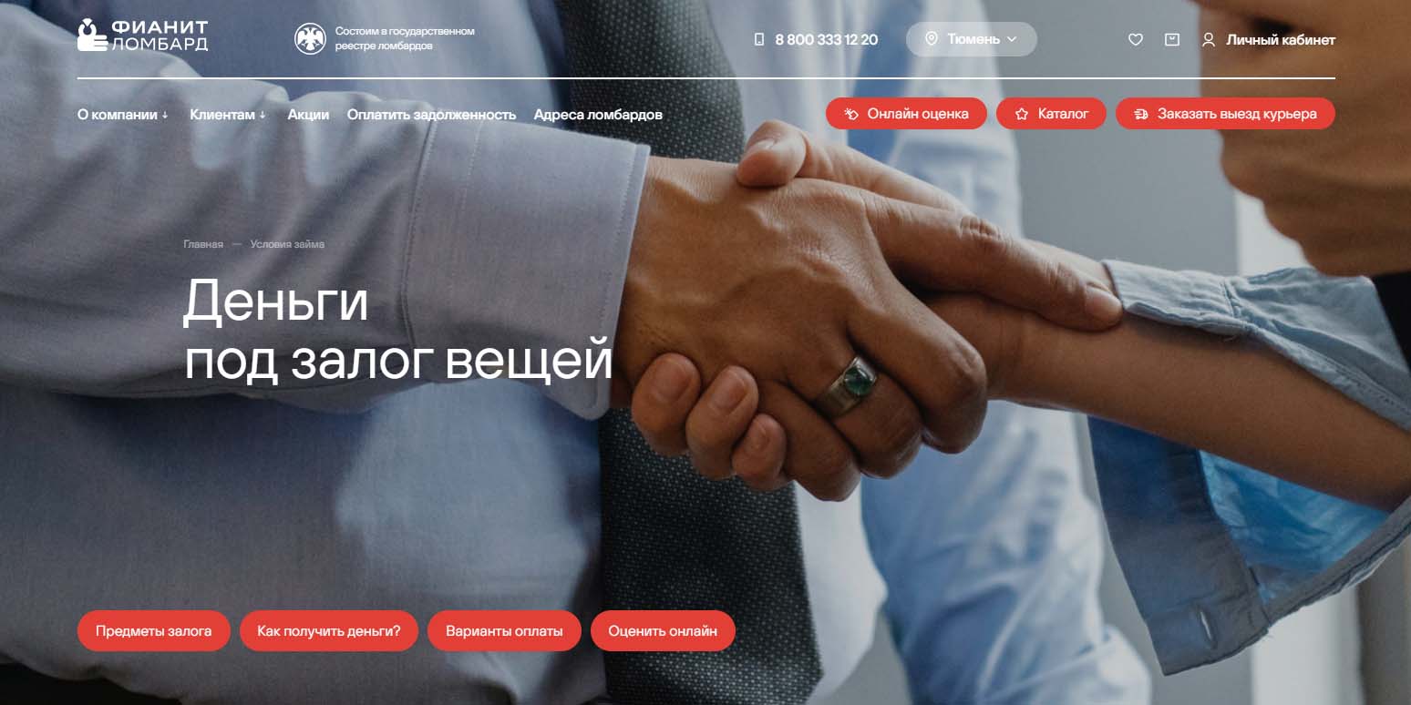 Кроме того, клиенты могут заказать выездную оценку. Для жителей Тюмени в «Фианит-Ломбарде» работает курьер, который приедет в любую точку города, оценит залог и выдаст деньги. Компания работает удобно, безопасно и клиентоориентированно.