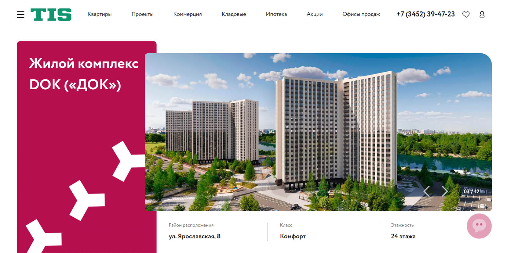 История группы компаний «ТИС» началась в 1998 году. Застройщик сразу взял высокую планку — его первой серьезной задачей стал проект премиум класса в историческом центре. За последующие годы компания имела дело с объектами всех ценовых сегментов: городская, загородная и коммерческая недвижимость. В настоящее время в процессе строительства несколько жилых комплексов. Один из них — «DOK» — отличается живописным видом на Мост влюбленных. Каждый дом спроектирован в форме трилистника, в центре которого будет находиться лифтовый холл.