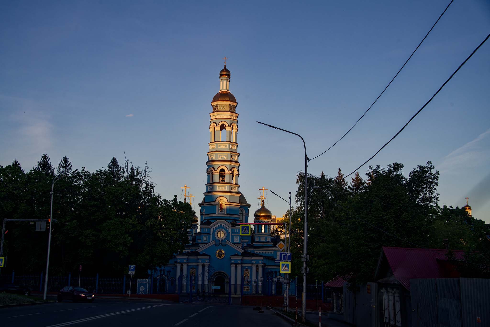 Красивая церковь была построена в начале прошлого века на деньги богатого купца и благотворителя Никифора Патокина. После революции внутри размещались мастерские, склады и кинотеатр. Многое было демонтировано и утрачено, поэтому после возвращения верующим церковь восстанавливали целых 15 лет. Сегодня кафедральный собор радует голубыми фасадами, белыми наличниками и позолоченными куполами.