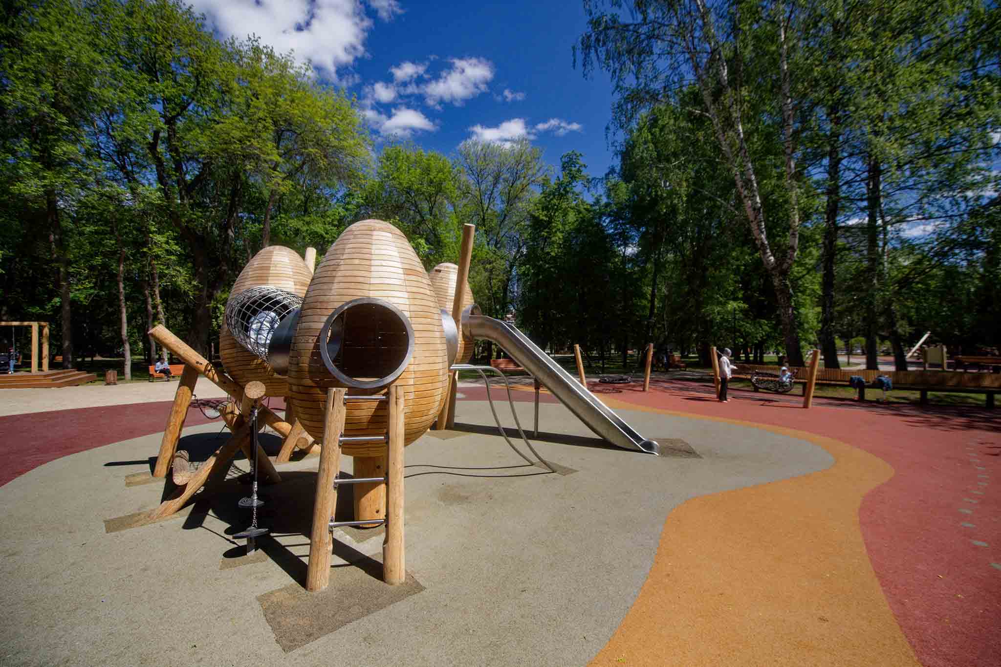 Парк расположен в Дёмском районе города. Он небольшой, но есть много разных детских активностей и мест для семейного отдыха: скейт-парк, лабиринт, детские площадки, качели, веревочный мостик, батут, кафе, места для пикника, сцена, на которой часто проводят разные мероприятия. В парке также есть площадка для реабилитации, адаптированная для особенных детей. Зимой парк красиво украшают, ставят елку и заливают каток.