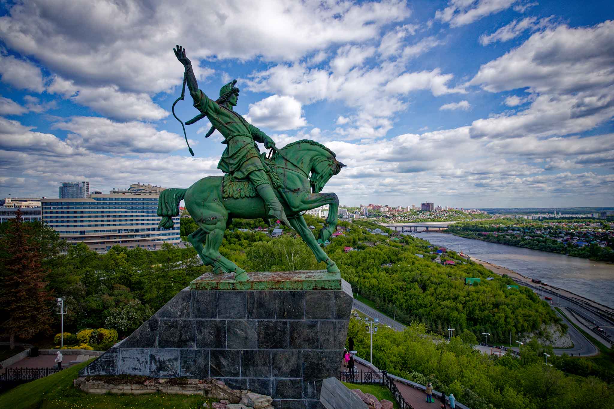 Салават Юлаев — национальный герой республики Башкортостан. Памятник, посвященный ему, возвышается на высоком берегу реки Белая. Монумент считают символом Уфы и всей Башкирии. Его высота — 9,8 метров, а вес — около 40 тонн. Это самая большая конная статуя в Европе, стоящая на трех опорах. Автор монумента — осетинский скульптор Сосланбек Тавасиев. Рядом с памятником находится смотровая площадка с красивым видом на реку и город.