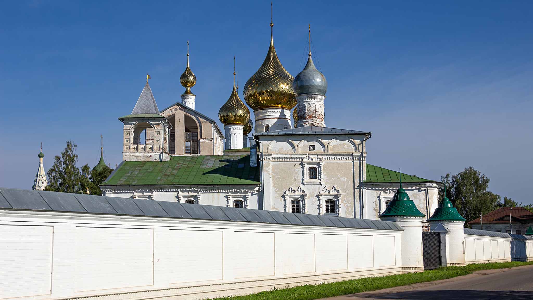 Самое старое здание на территории — княжеские палаты 1482 года постройки. Это парадная часть дворца князя Улицкого, единственная сохранившаяся (остальные постройки были деревянными). С 1584 года тут жила выгнанная и Москвы жена Ивана Грозного Мария Нагая и ее сын царевич Дмитрий. Рядом с дворцом недавно поставили памятник царевичу — автор знаменитый скульптор Александр Рукавишников. Рядом — храм Димитрия на крови, который поставили на месте гибели мальчика. Ну и, конечно, полюбуйтесь на Спасо-Преображенский собор. В нем поначалу похоронили царевича, но спустя некоторое время вскрыли раку, обнаружили нетленные мощи, канонизировали убитого и отвезли в Москву, в Архангельский собор — место погребения всех царских особ.