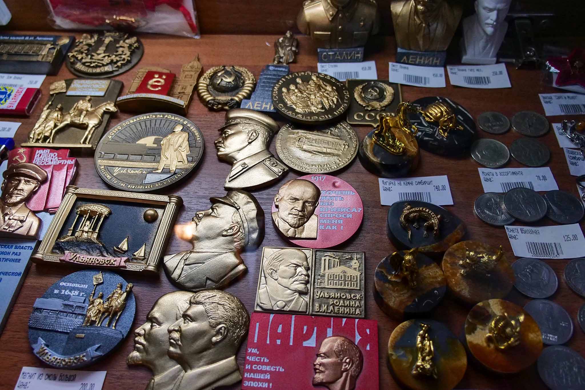 Сувенирную продукцию с изображением Ленина, сувенир из «волжского янтаря» – «симбирцита», который имеет единственное и уникальное месторождение в Ульяновской области, пряник «Привет из Ульяновска!», сыр местного производства и крафтовый шоколад. В музее Балалайки можно купить балалайку или укулеле – себе на память или в подарок, а также брелоки и магниты с изображением Ульяновска, буквы Ё, музеев.