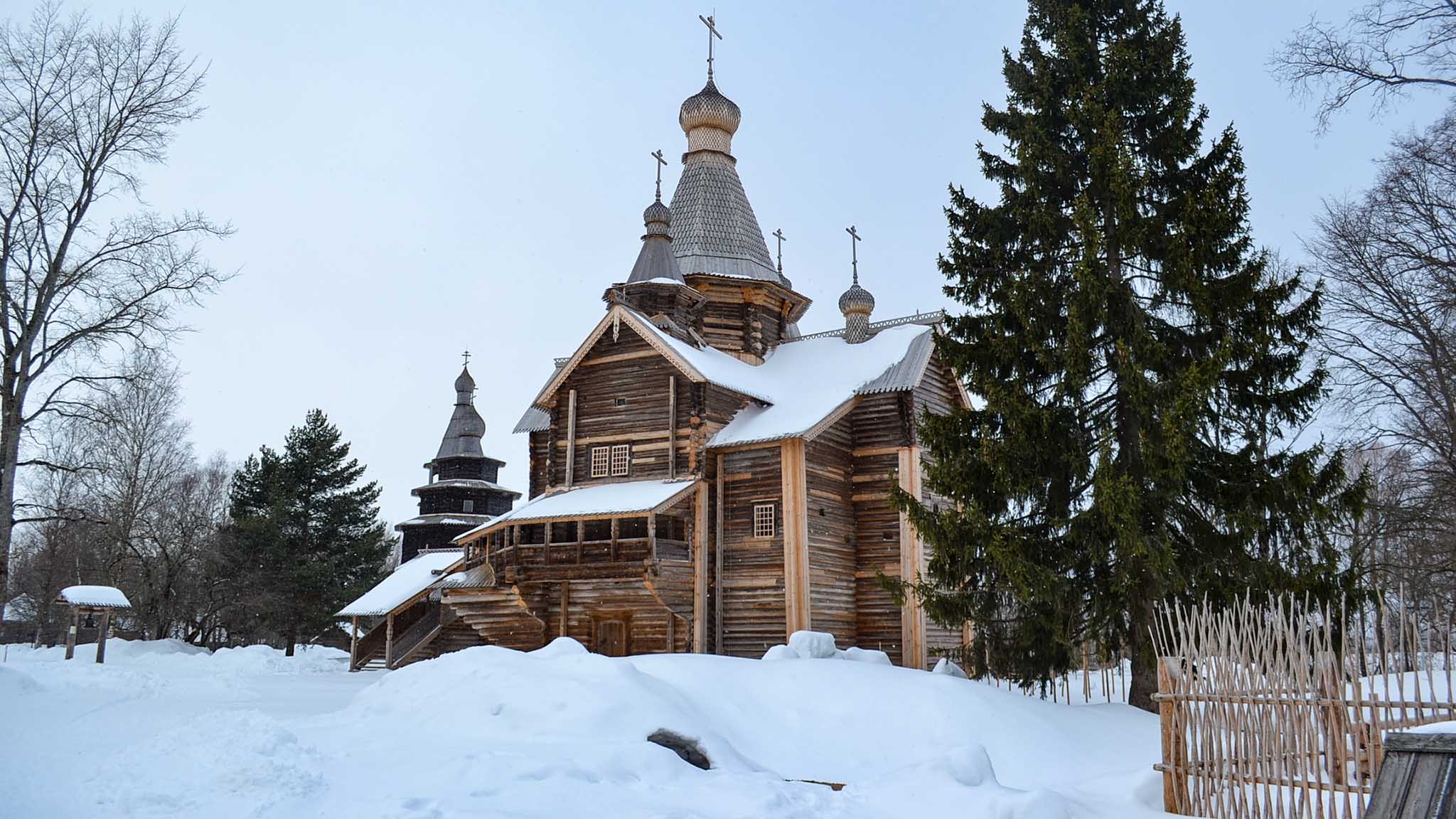 Пройдя от крестьянских изб чуть дальше, увидите две роскошные деревянные церкви — Рождества Богородицы (1531) и Николая Чудотворца (1757). Рядом с обеими фото будут очень красивыми.