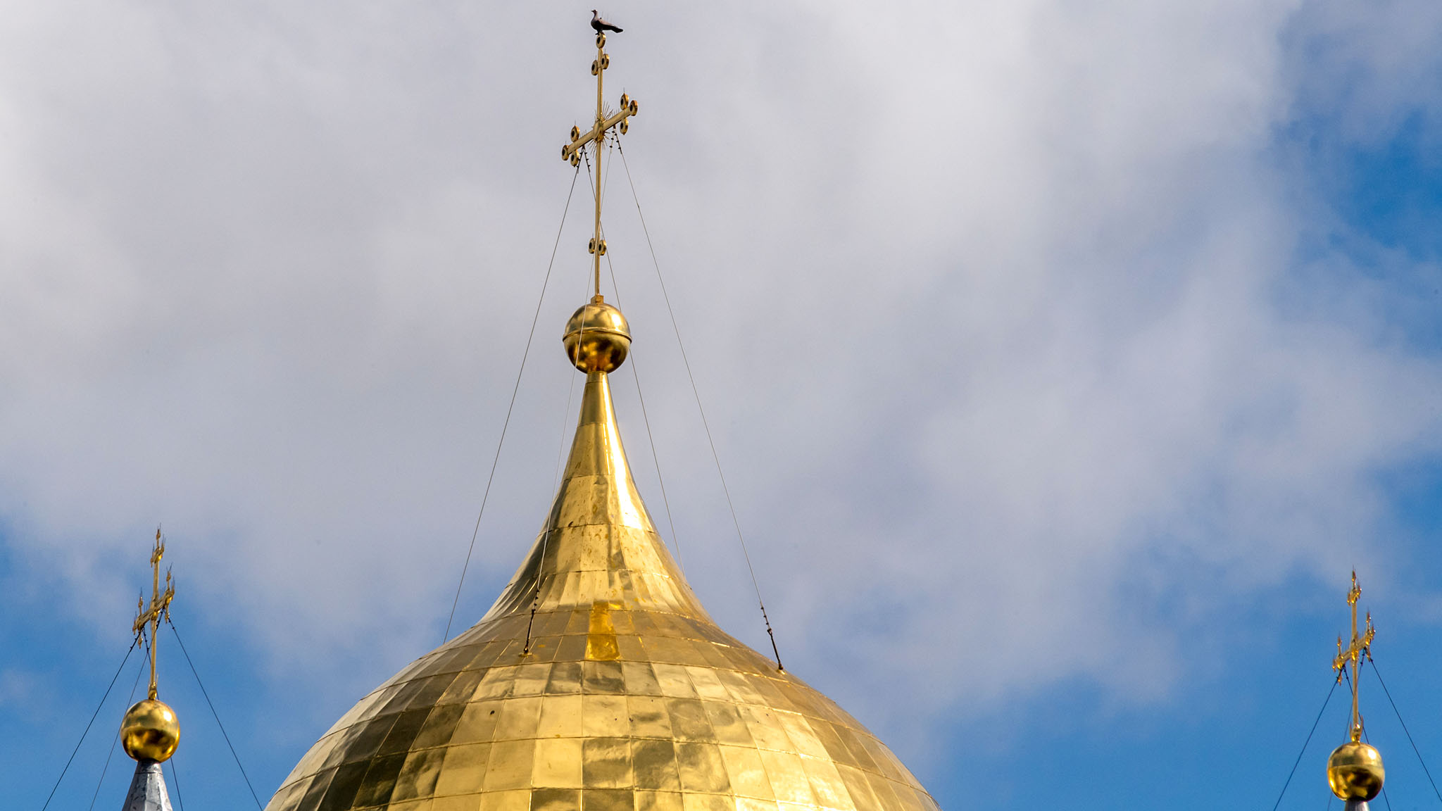 На верхушке креста самого высокого купола Софийского собора сидит свинцовый голубь. По легенде, он тут еще со времен Ивана Грозного, который напал на Новгород и чинил здесь безобразия вместе со своими опричниками. Придя в ужас от увиденного, голубь окаменел. И с тех пор считается хранителем города: если улетит — тогда беда.