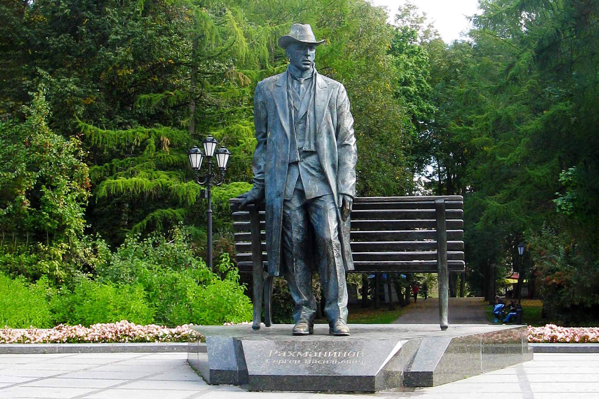 Бронзовая скульптура находится неподалеку от Кремля. Фигура композитора высотой 3,6 метра опирается на бронзовую же скамеечку. К слову, летом тут устанавливают динамики, из которых звучит музыка Рахманинова.