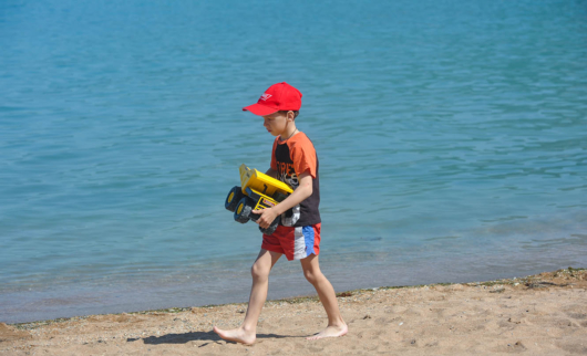 Сложно представить более комфортное место для игр, купаний и морских прогулок с малышами. Удобный выход к пляжу позволяет с комфортом преодолеть 200 метров дюн даже с коляской. Море у берега не глубже метра, на дне нет камней. За счет открытой бухты, период «цветения» моря в районе пляжа в июле-августе очень короткий, к тому же берег ежедневно убирают.