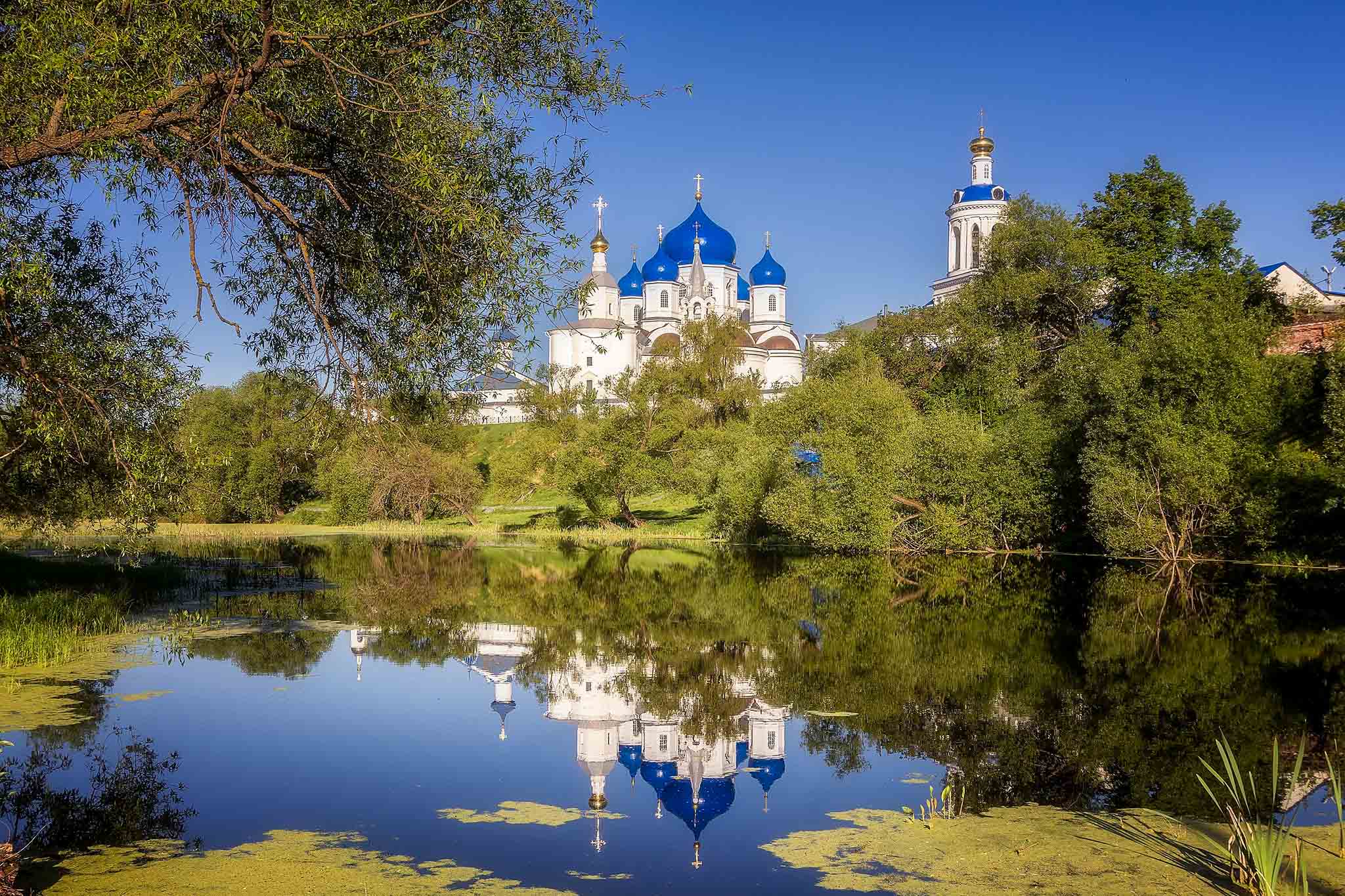 Купола здешних храмов голубые – цвет означает, что церковь посвящена Пресвятой богородице. Кстати, по легенде, когда Андрей Боголюбский ехал во Владимир, именно тут ему явилась Богородица, в честь которой он поставил на месте будущей своей резиденции первый храм в этих местах.