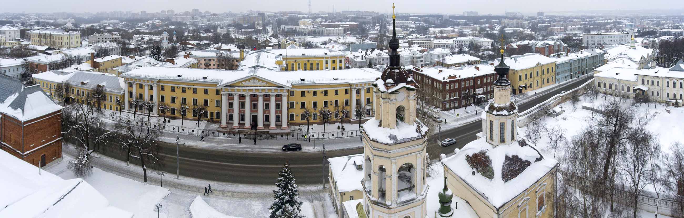 С Большой Московской улицы — она центральная во Владимире — попадаем на Соборную площадь, это главное место уличных гуляний. Тут вам и смотровая площадка, и праздничная ярмарка, и каток, и концерты, и забег Дедов Морозов, который традиционно устраивают в конце новогодних каникул. И ночные новогодние, и дневные рождественские гуляния будут тоже здесь. Впрочем, праздничных площадок в городе будет много, повсюду откроются ярмарки.