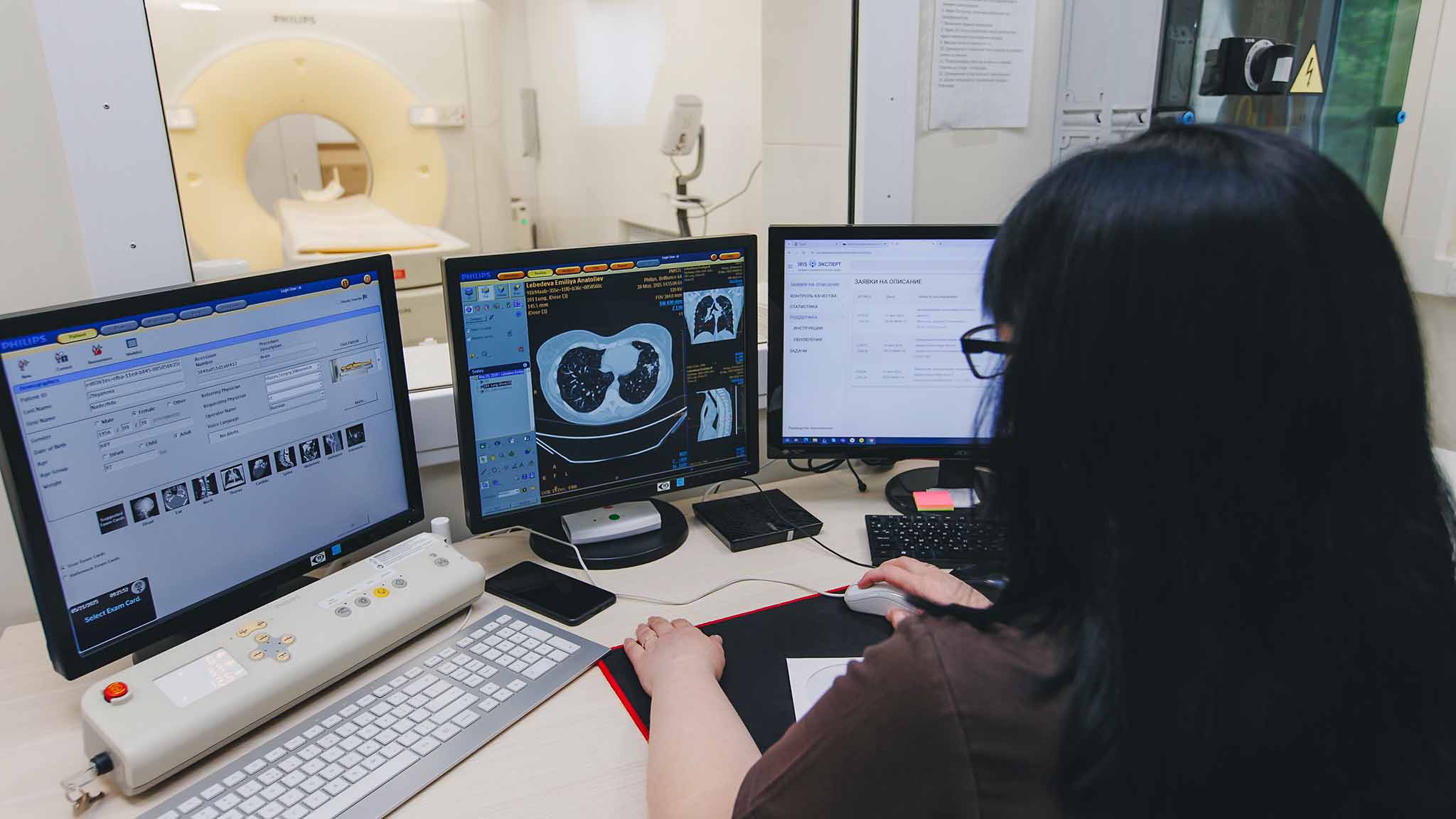 В штате клиники — врачи-рентгенологи с многолетним опытом работы, которые регулярно повышают квалификацию. В центре действует двухуровневая система контроля качества описаний: при расшифровке снимков специалист как вспомогательную функцию использует искусственный интеллект, который «подсвечивает» даже минимальные отклонения от нормы.