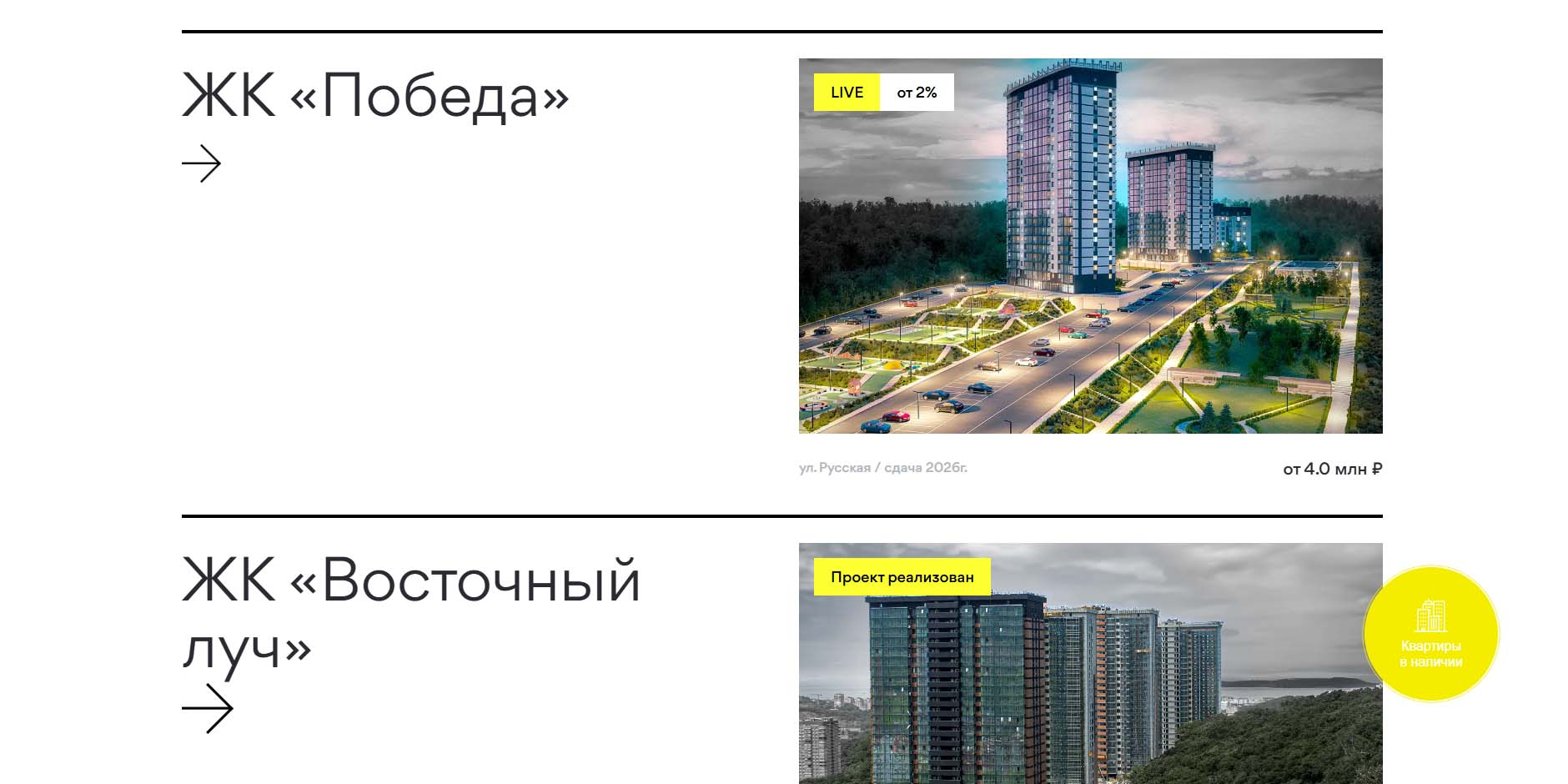 На протяжении более двух десятков лет компания остается одним из признанных лидеров на рынке жилой недвижимости Владивостока. Сейчас девелопер строит жилой комплекс «7Я». Это два 25-этажных дома комфорт-класса с продуманной инфраструктурой и социальной составляющей. Окружение «7Я» — развитая инфраструктура: в шаговой доступности школы, детские сады, магазины и транспортные маршруты, которые обеспечивают быстрый доступ в центр города. Срок сдачи первой очереди запланирован на IV квартал 2026 года, вторая очередь — I квартал 2029 года.