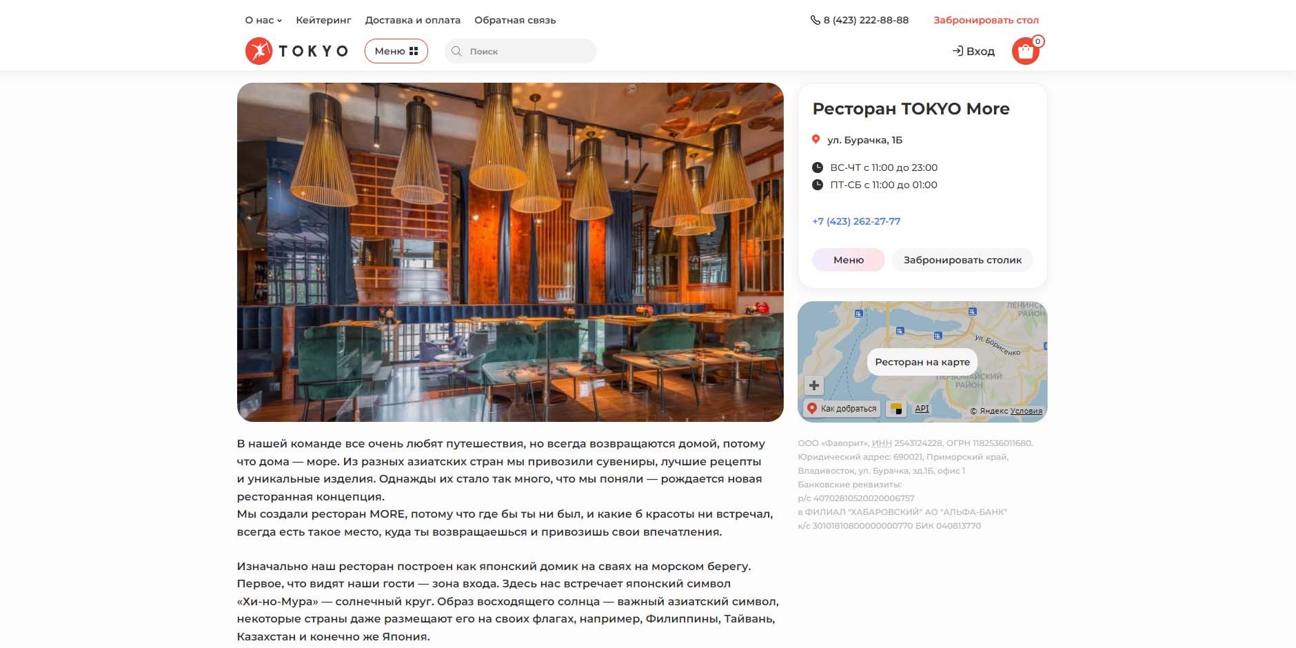3. Выбирать ресторан также важно исходя из вкусовых предпочтений. Владивосток славится заведениями, предлагающими разнообразные блюда из морепродуктов. Однако в городе есть немало ресторанов для ценителей мяса.