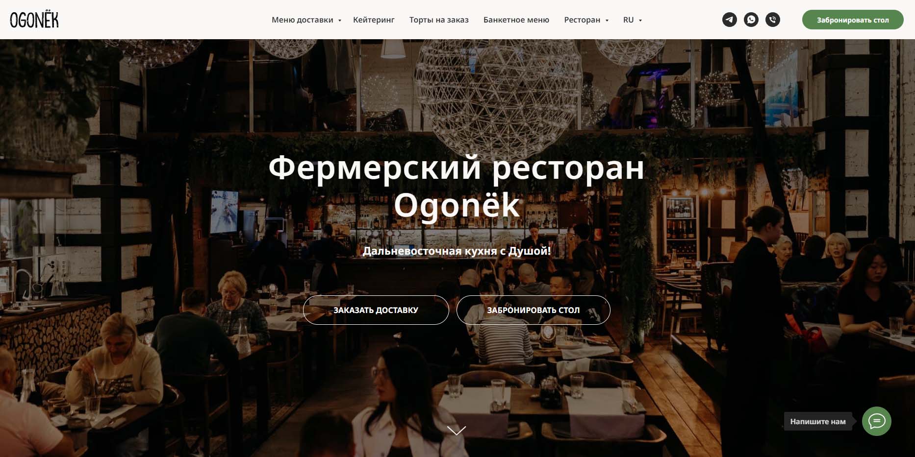 В меню фермерского ресторана блюда готовят преимущественно из продуктов, которые закупают напрямую у местных производителей. Это ягоды, морепродукты, грибы, рыба и другие дары тайги и океана из разных уголков Дальнего Востока. Интерьер уютный и теплый благодаря множеству деревянных деталей.