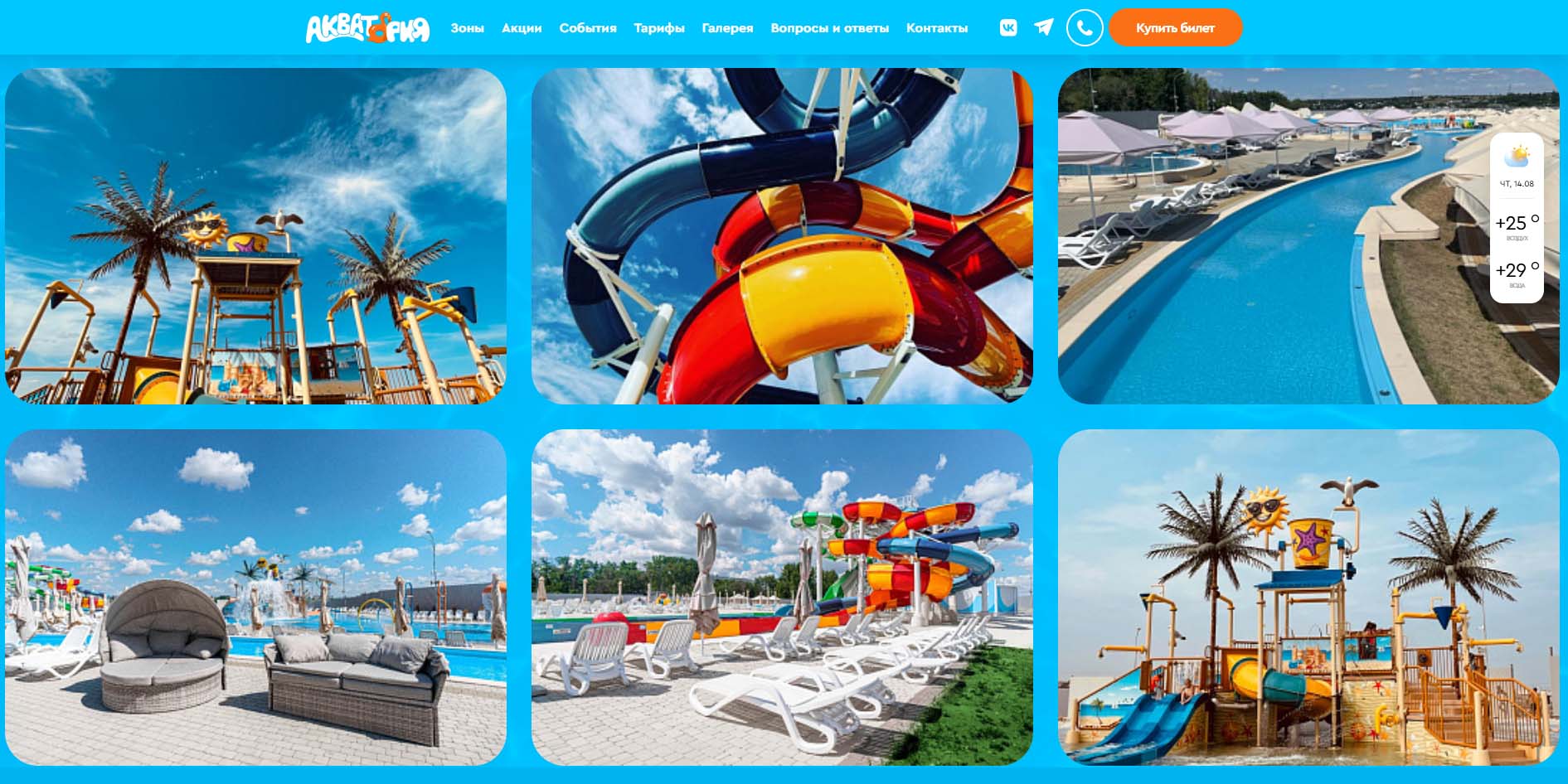 Открытый в 2021 году аквапарк стал популярным в Волгограде местом для летнего семейного отдыха. Территория включает волновой бассейн длиной 55‑метров с регулярными приливами, «медленную реку», зоны для малышей с невысокими горками и гидромассажные бассейны. Детям особенно нравятся пенные вечеринка и организованные анимации. Вода подогревается до комфортных +28…+30 °C, а для безопасности посетителей предусмотрено мягкое нескользящее покрытие.
