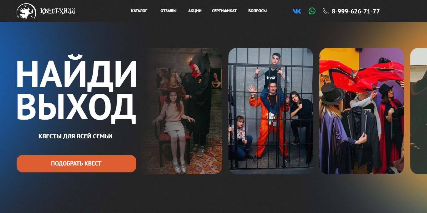 В квеструме разработаны сценарии для взрослых и детей. Есть формат ориентированный на младших школьников, но в этом случае участие взрослых обязательно. Среди сценариев — истории по мотивам Гарри Поттера, «Алисы в стране чудес», «Пиратов» и других сказок. Игры проходят в просторных комнатах, где задействованы декорации и актеры. Безопасный формат с мягкими задачами и элементами квеста-шоу.