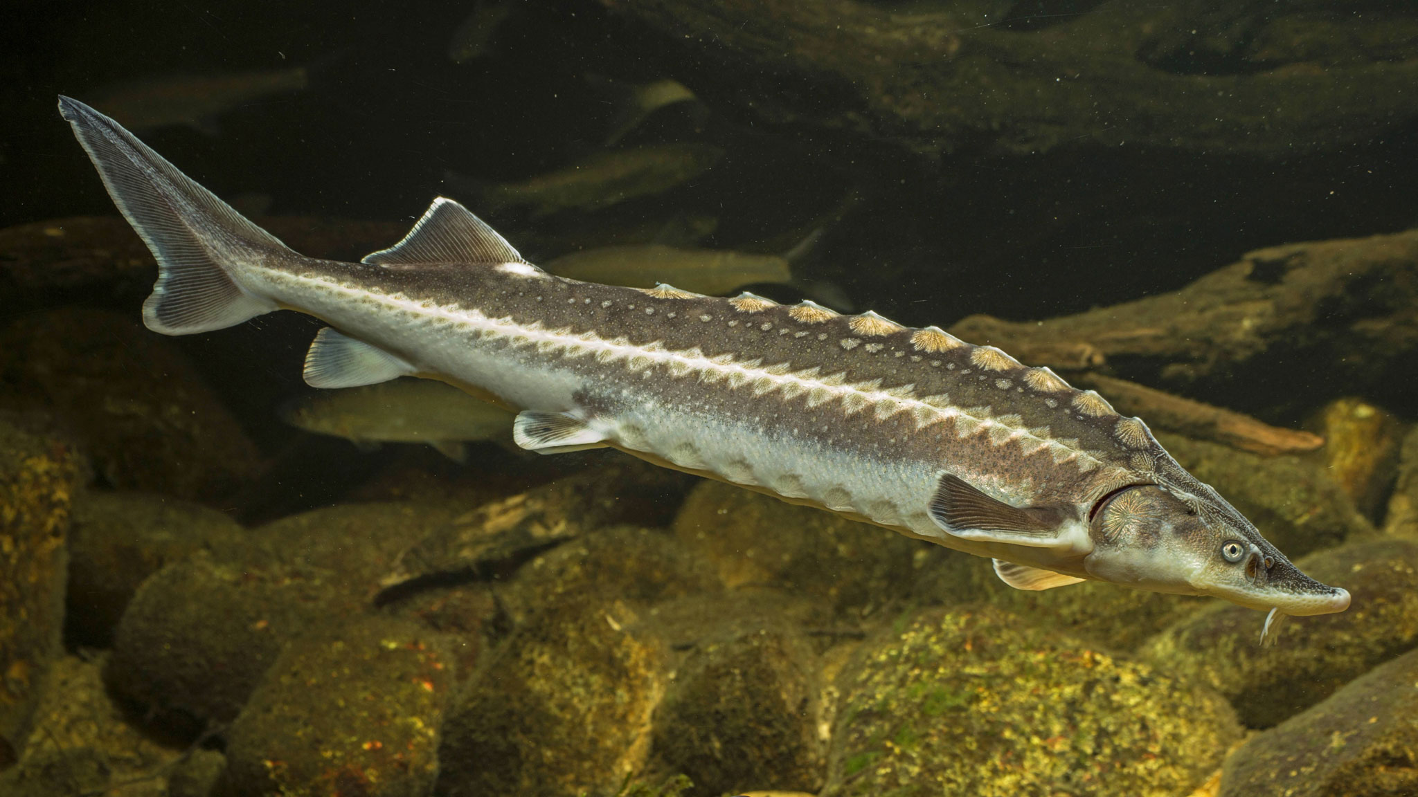 Все осетровые похожи между собой. Их легко отличить по вытянутому телу внушительной длины (например, размер белуги может достигать 4 метров), нескольким рядам костяных наростов и усам на рыльце.