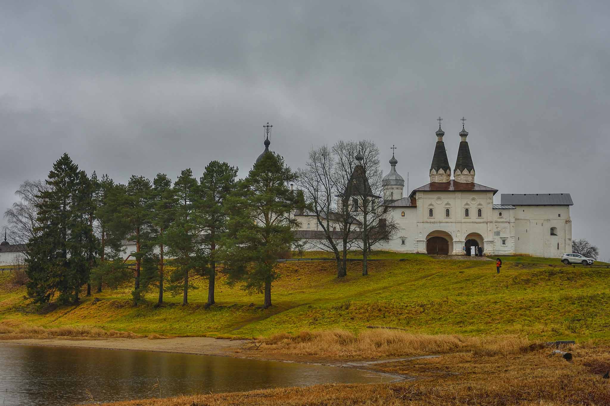 Обитель в 20 км от Кириллова, основанная в 1398 году. В соборе Рождества Богородицы бережно хранят фрески, созданные русским изографом и продолжателем традиций Андрея Рублева – Дионисием. Чтобы не повредить старинную стенопись, храм открывают только летом, в сухую погоду. Фотографировать фрески запрещено.