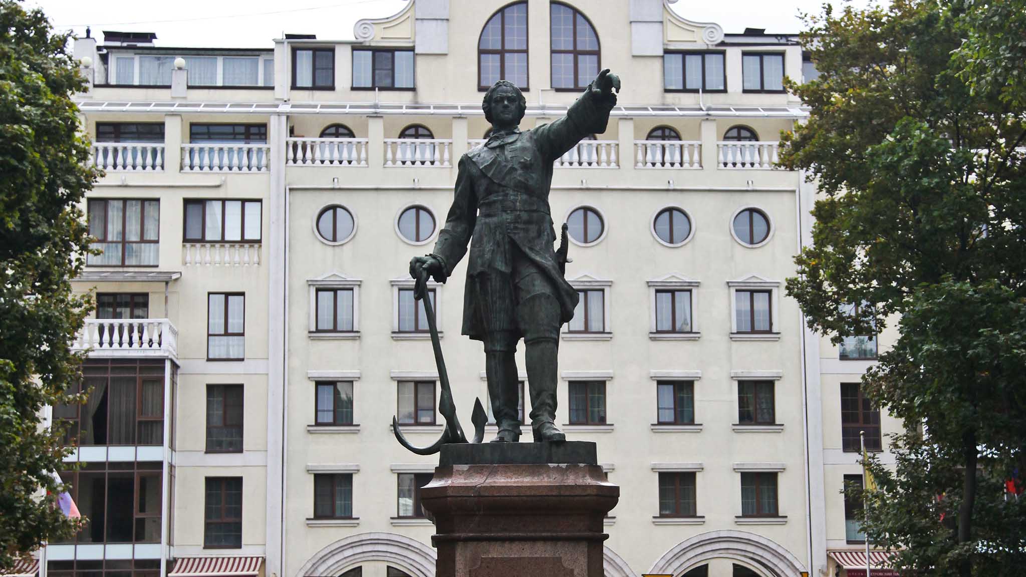 Сквер назван в честь первого российского императора, который не раз бывал в Воронеже, и где начал создавать флот страны. Здесь установлен один из первых памятников Петра Великого. Он выполнен в полный рост, опирающимся на якорь. В центре сквера установлен фонтан, а рядом с ним стоят скамеечки — здесь приятно отдохнуть и насладиться уютной атмосферой.