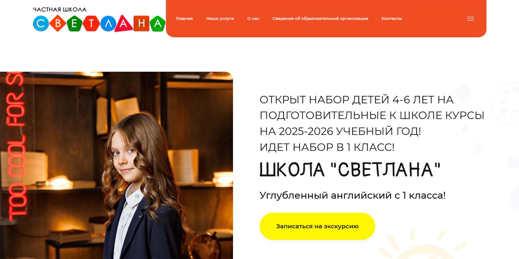 Школа работает с 1998 года. Учиться здесь можно до 9 класса, сдать ОГЭ и получить аттестат государственного образца. В классах — не больше 10 человек. Уклон делается на углубленное изучение английского языка, математики и русского языка. «Учителя вкладывают душу», — так пишут родители о педагогах школы в отзывах. Каждый день ученики посещают дополнительные занятия. В школе работает художественная, музыкальная, танцевальная и вокальная студии, спортивная секция. Можно записаться на индивидуальные занятия по всем предметам.