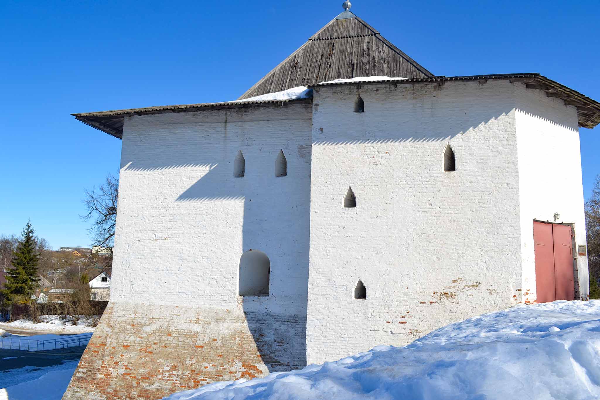В XVII веке в Вязьме возводят крепость, чтобы быть преградой полякам, которые мечтали дойти до Кремля и сесть на русский трон. Это была мощная стена с шестью башнями. В 1812 году бОльшую часть сооружения уничтожили французы. Уцелела только Спасская башня высотой 25 метров. Толщина ее стен у основания — 6 метров!